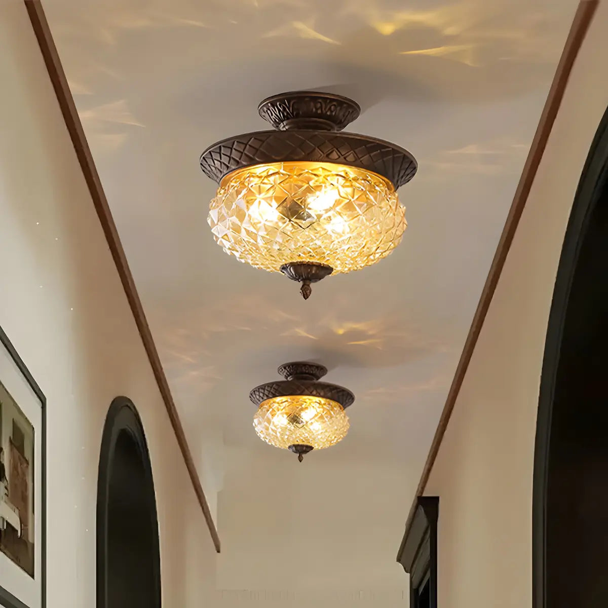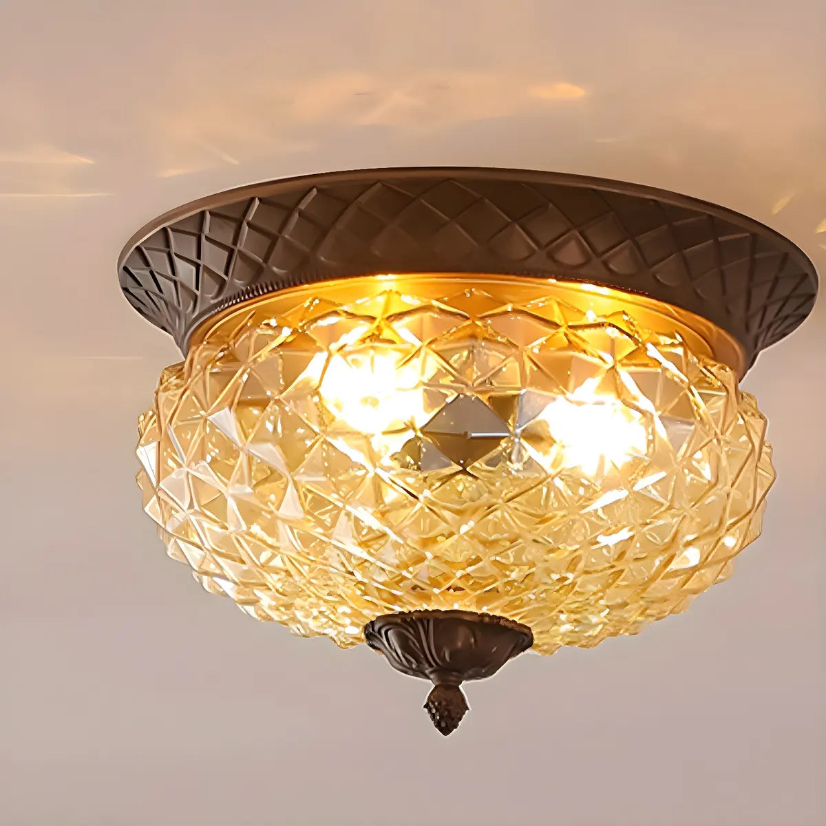 ZOWALA - Vintage Walnut Amber Faceted Glass Flush Mount Light