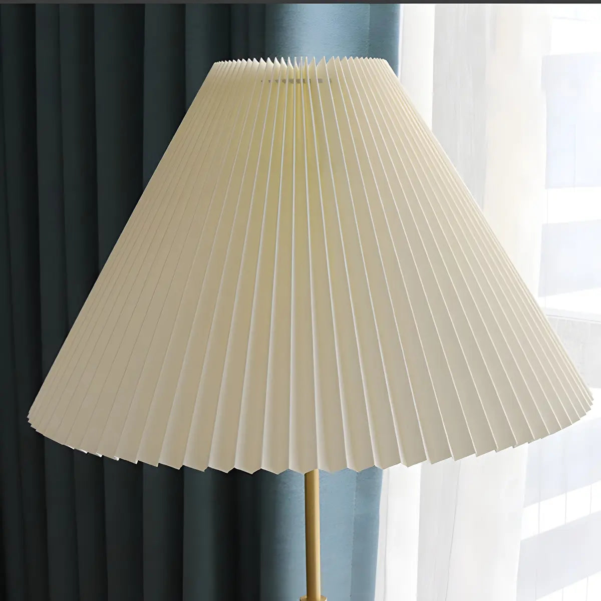 ZOWALA - Vintage Walnut Gold Pleated Cone Floor Lamp