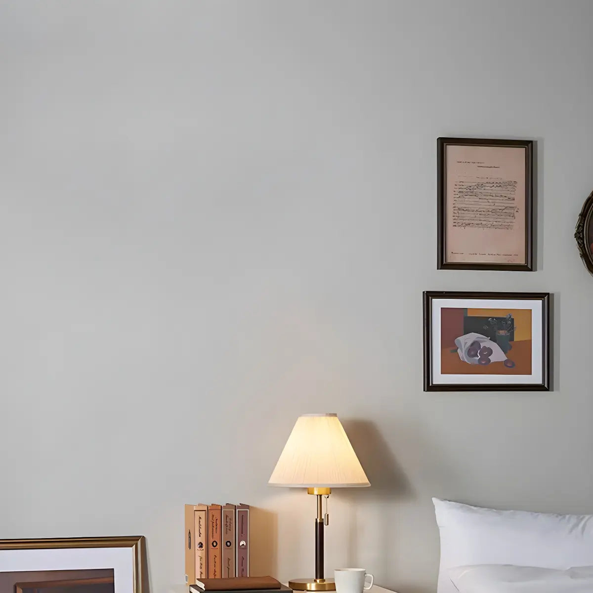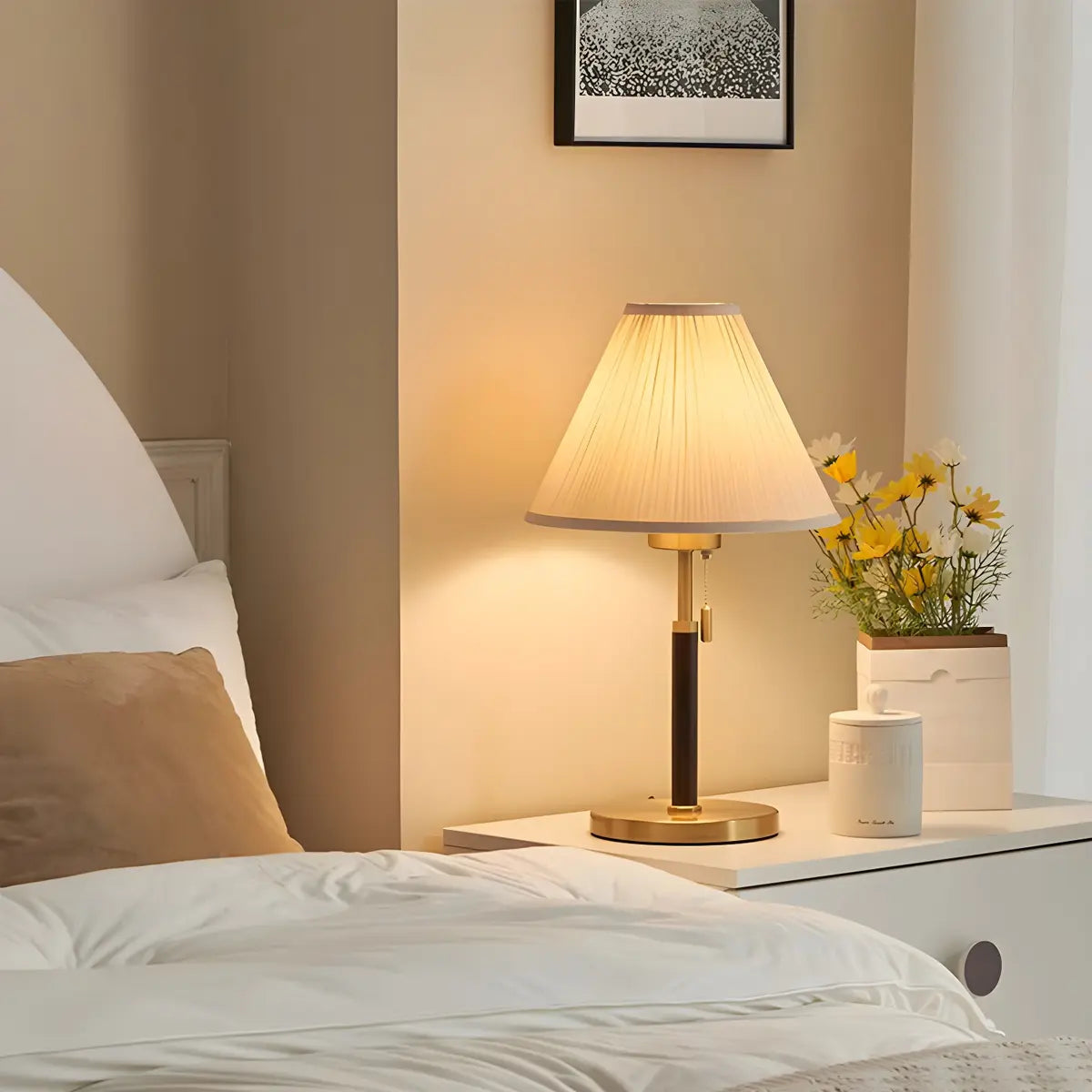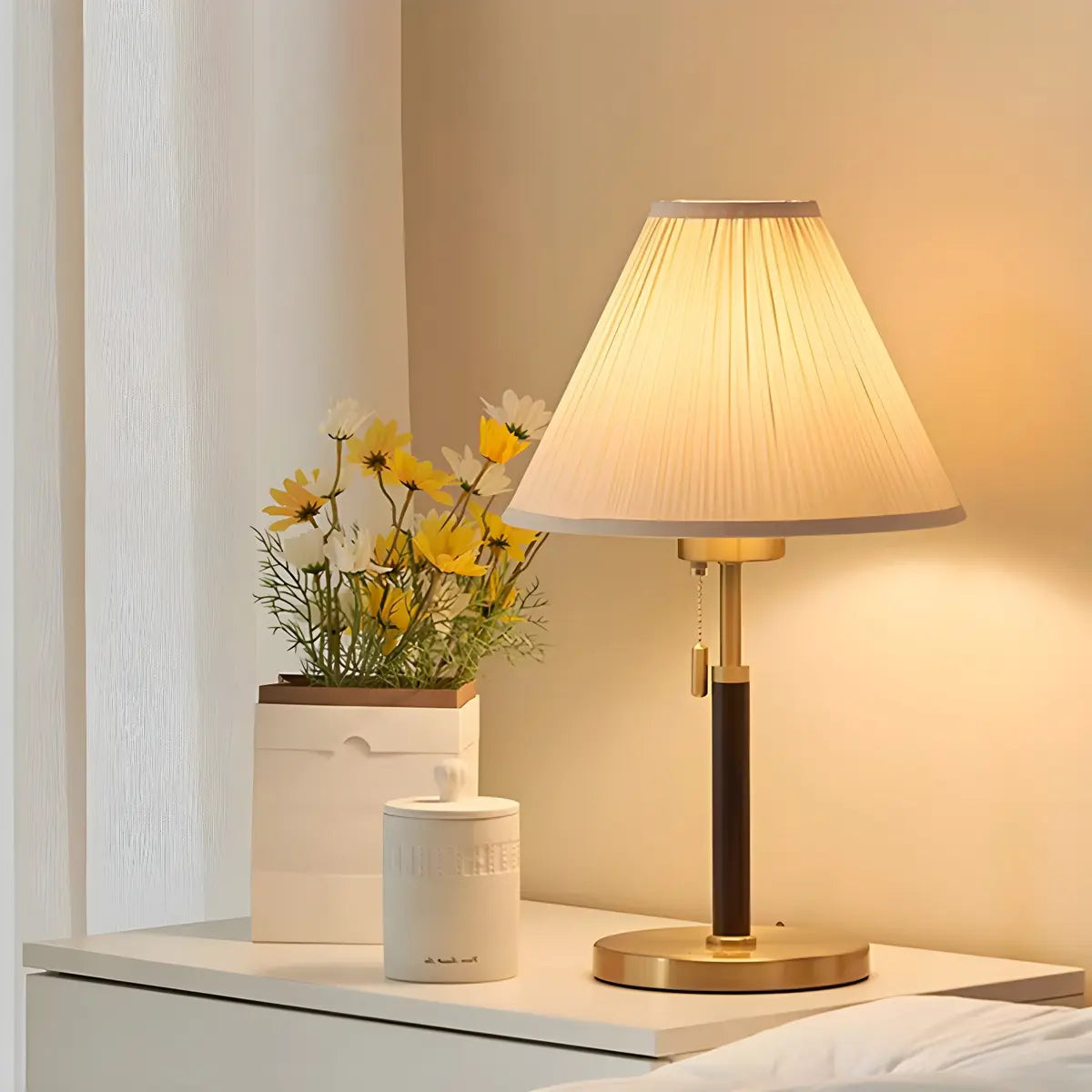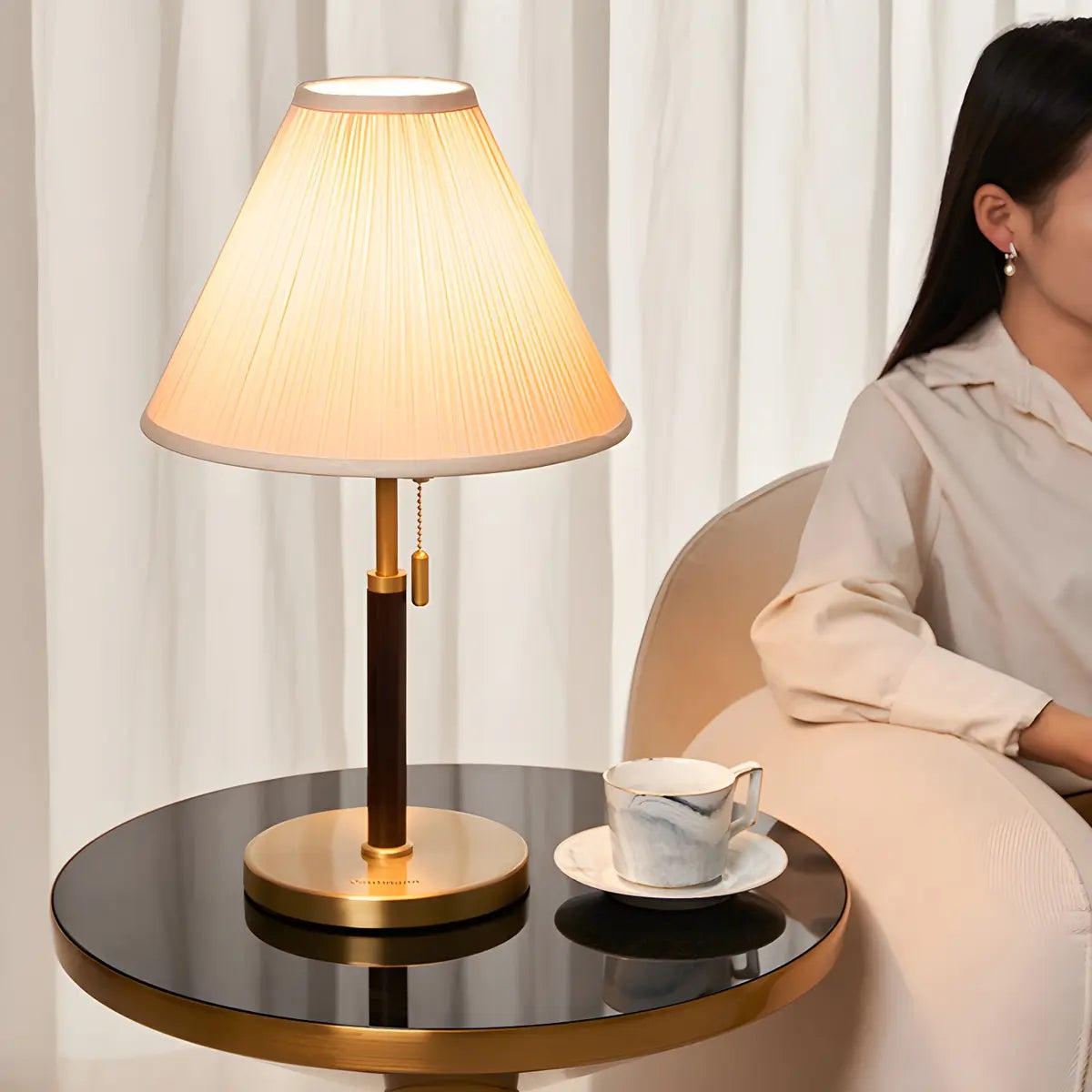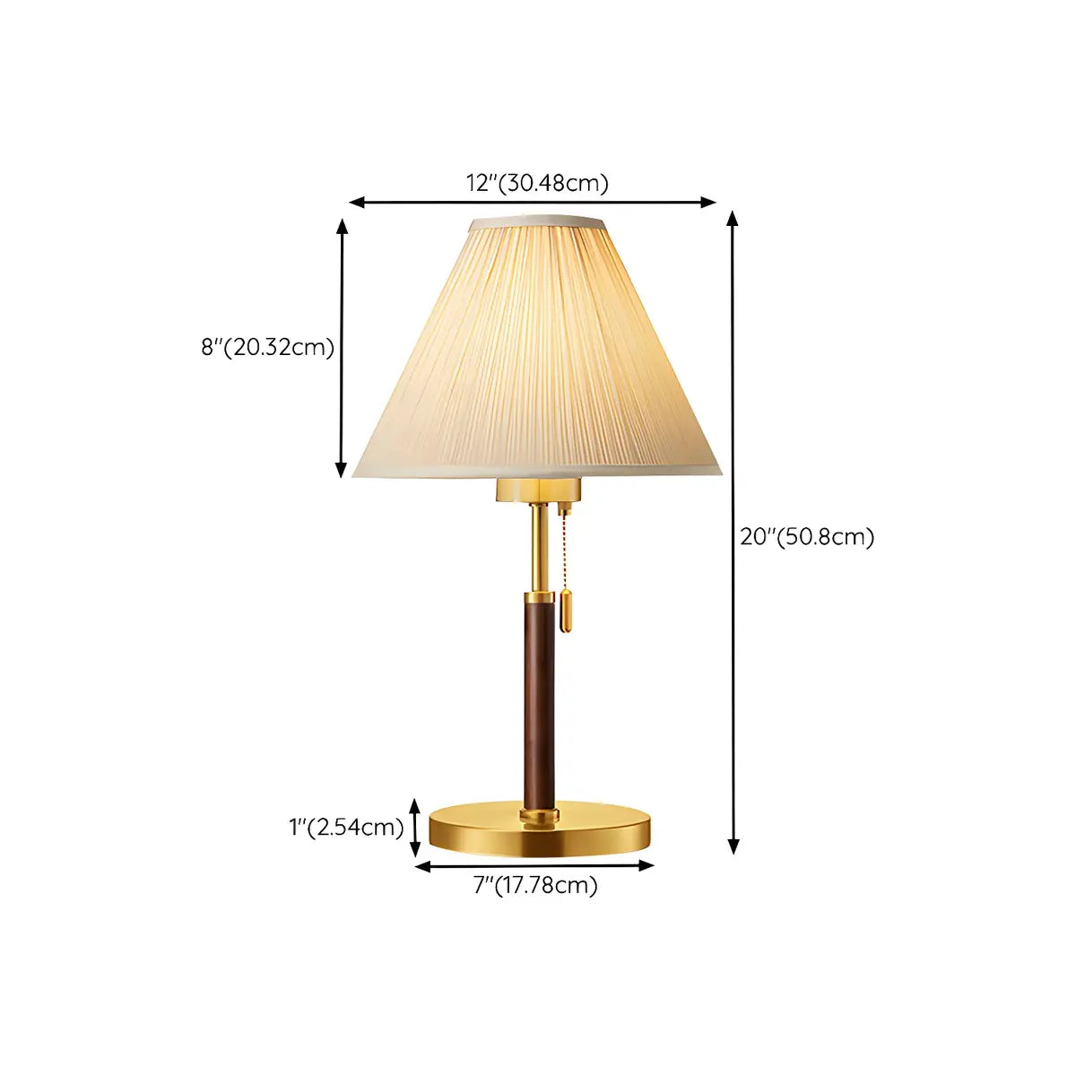 ZOWALA - Vintage White Fabric Cone Walnut Gold Table Lamp