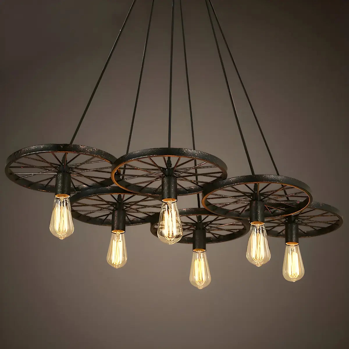 ZOWALA - Black Metal Wagon Wheel Edison Chandelier