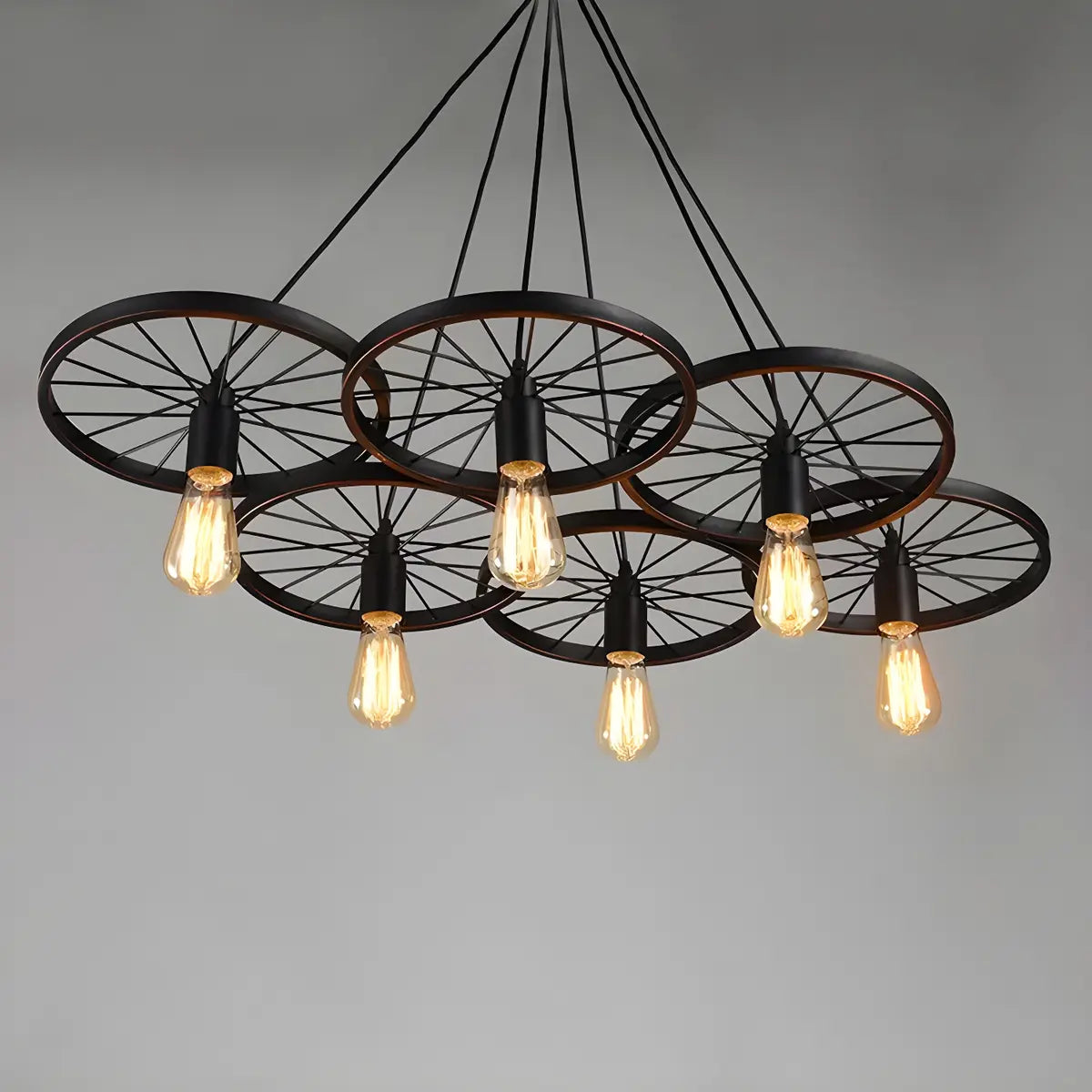 - With its distinctive wheel shape inspired by the past, this chandelier combines modern and nostalgic design elements to add a unique personality to your home.