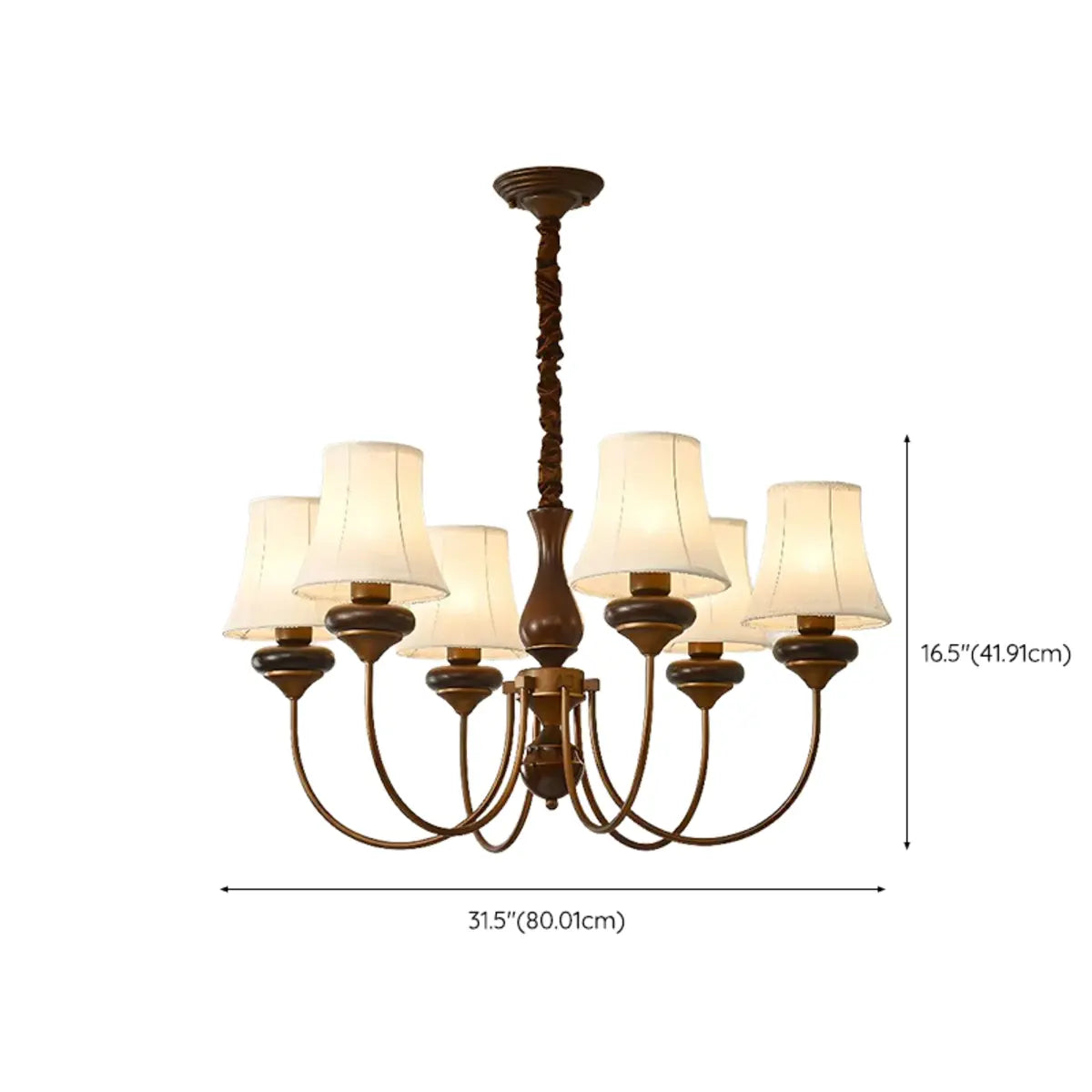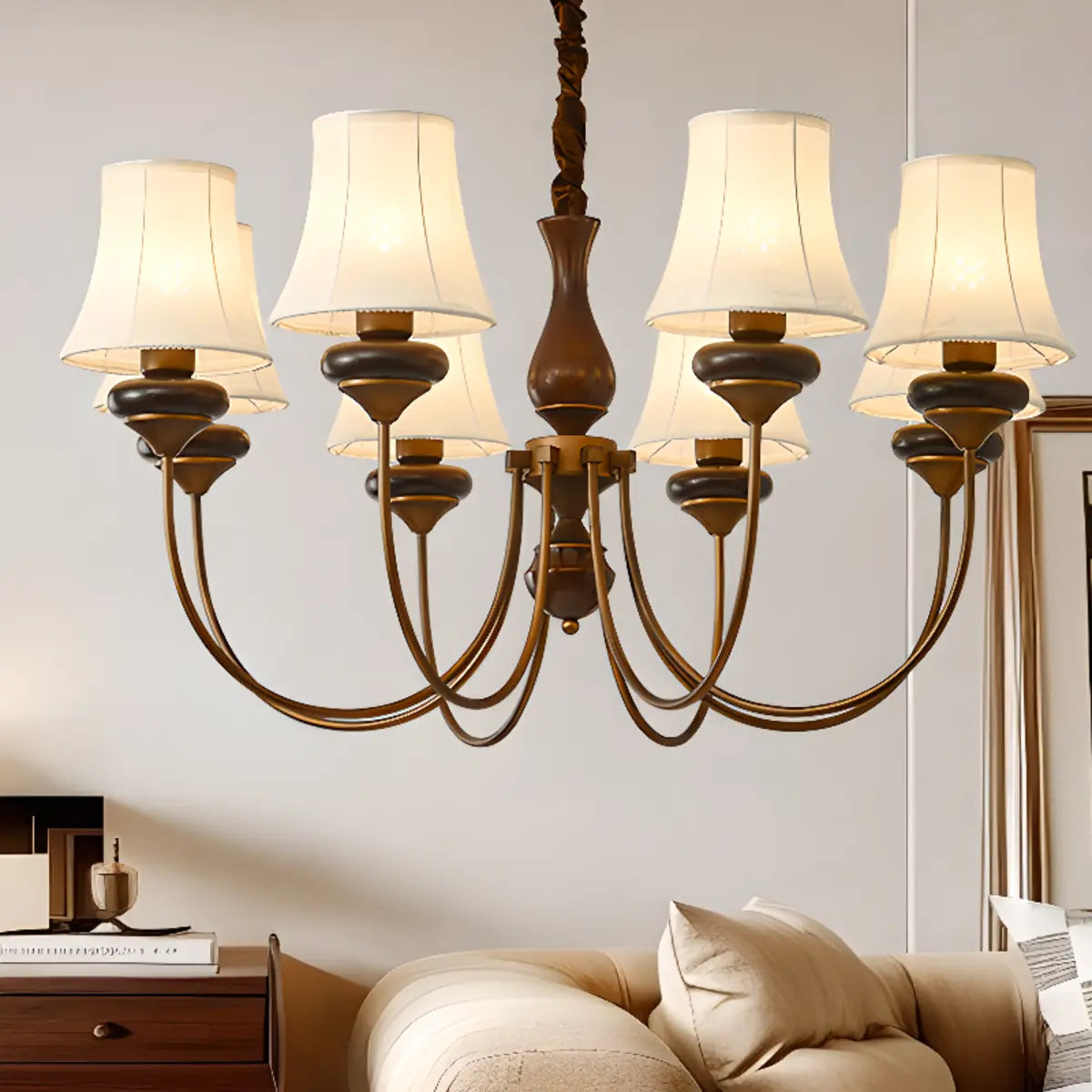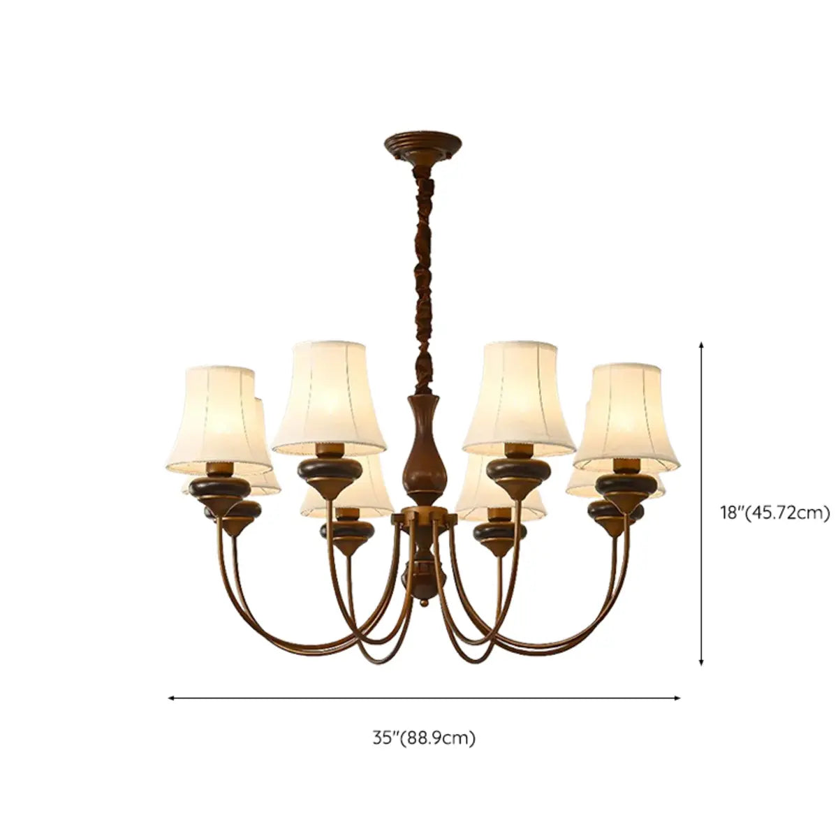 ZOWALA - Classic Walnut Curve Arm Fabric Bell Chandelier