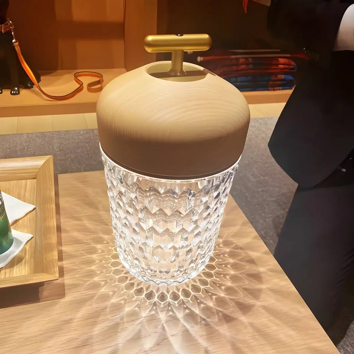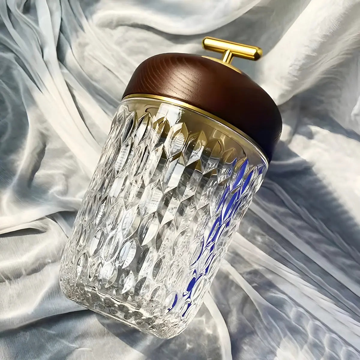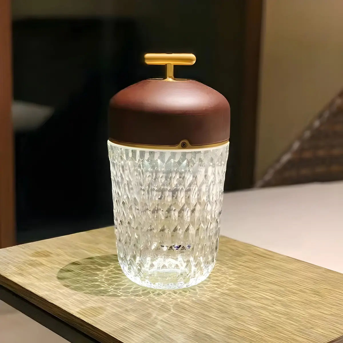 ZOWALA - Walnut Gold Diamond Glass Cup-Shape Table Lamp