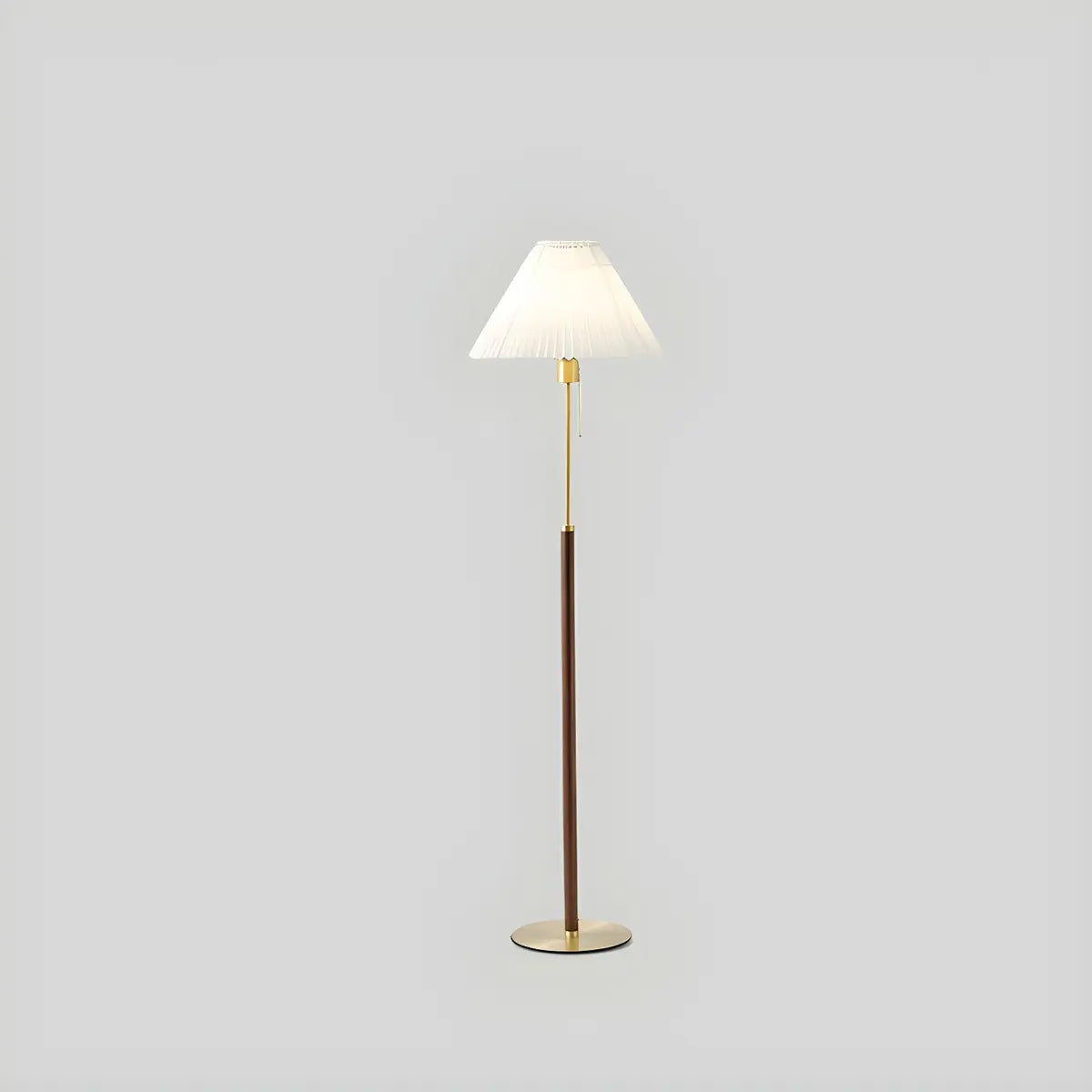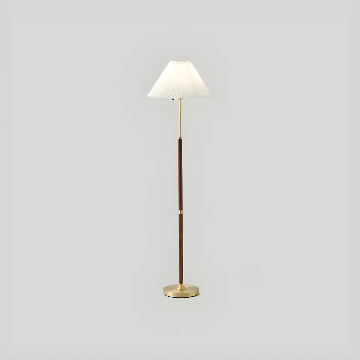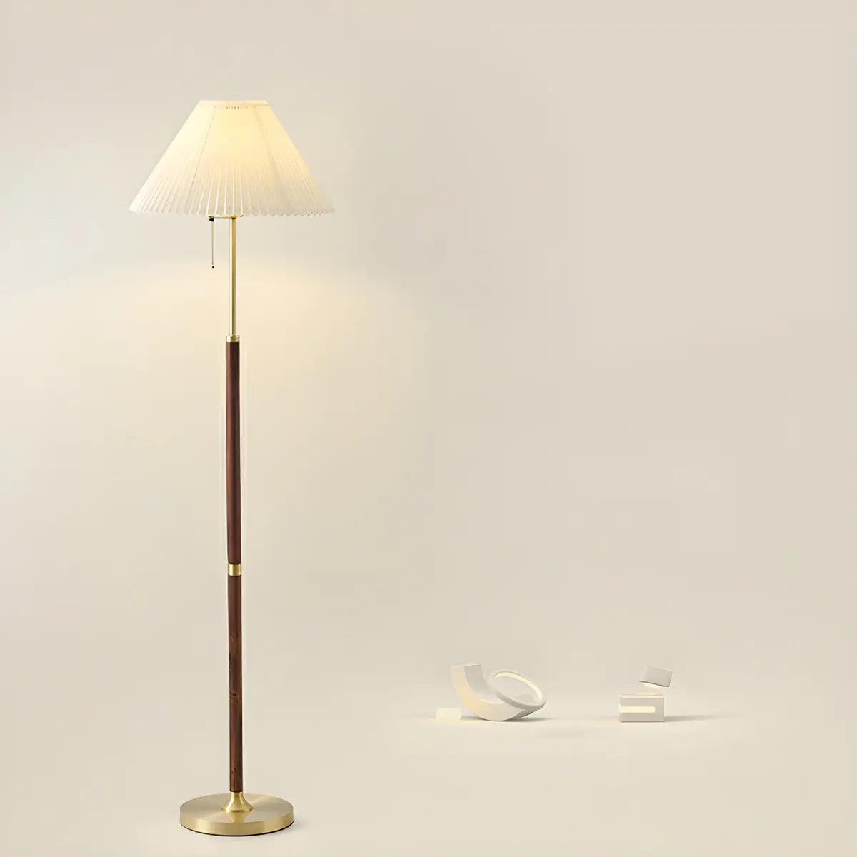 ZOWALA - Walnut Gold Pleated Fabric Pull Chain Floor Lamp
