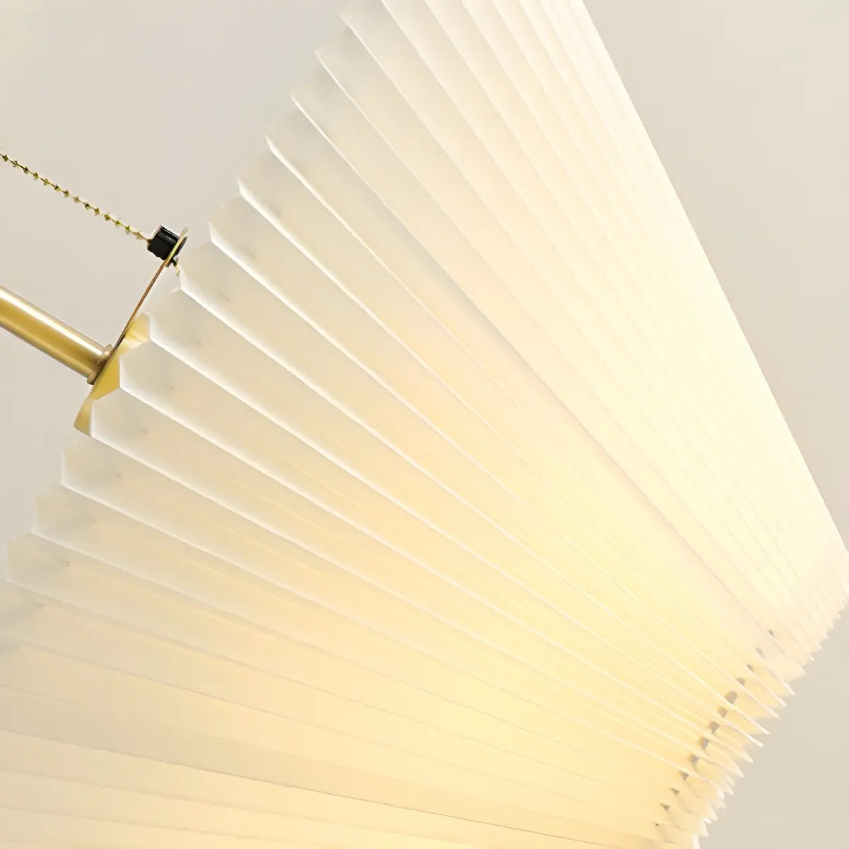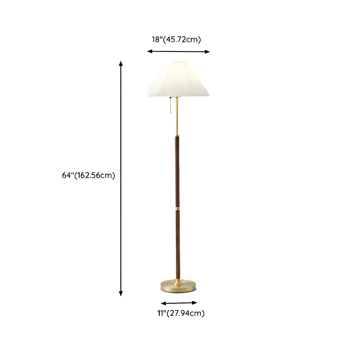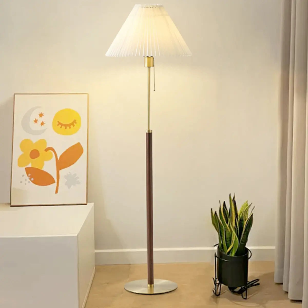 ZOWALA - Walnut Gold Pleated Fabric Pull Chain Floor Lamp