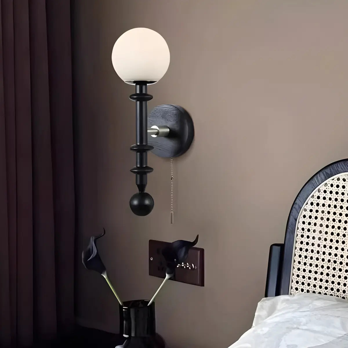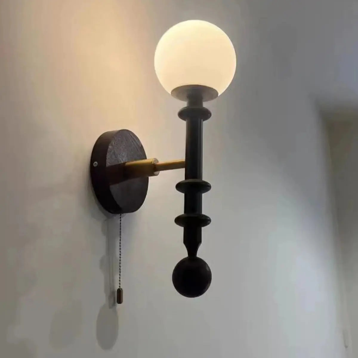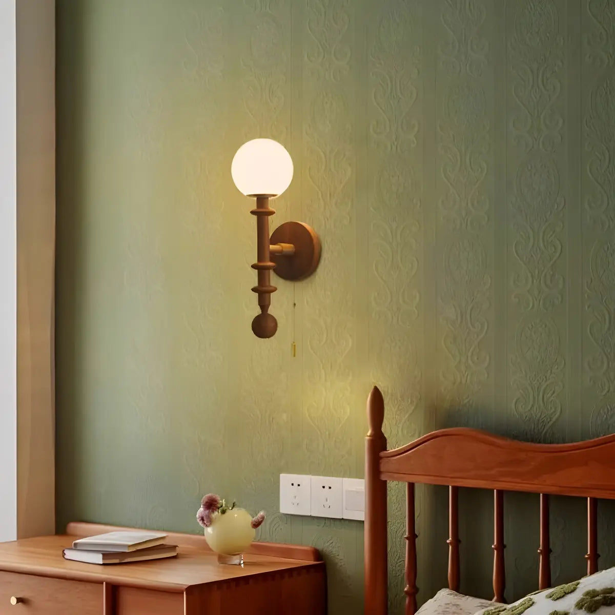 ZOWALA - Walnut Wood Frosted Glass Globe Wall Sconce