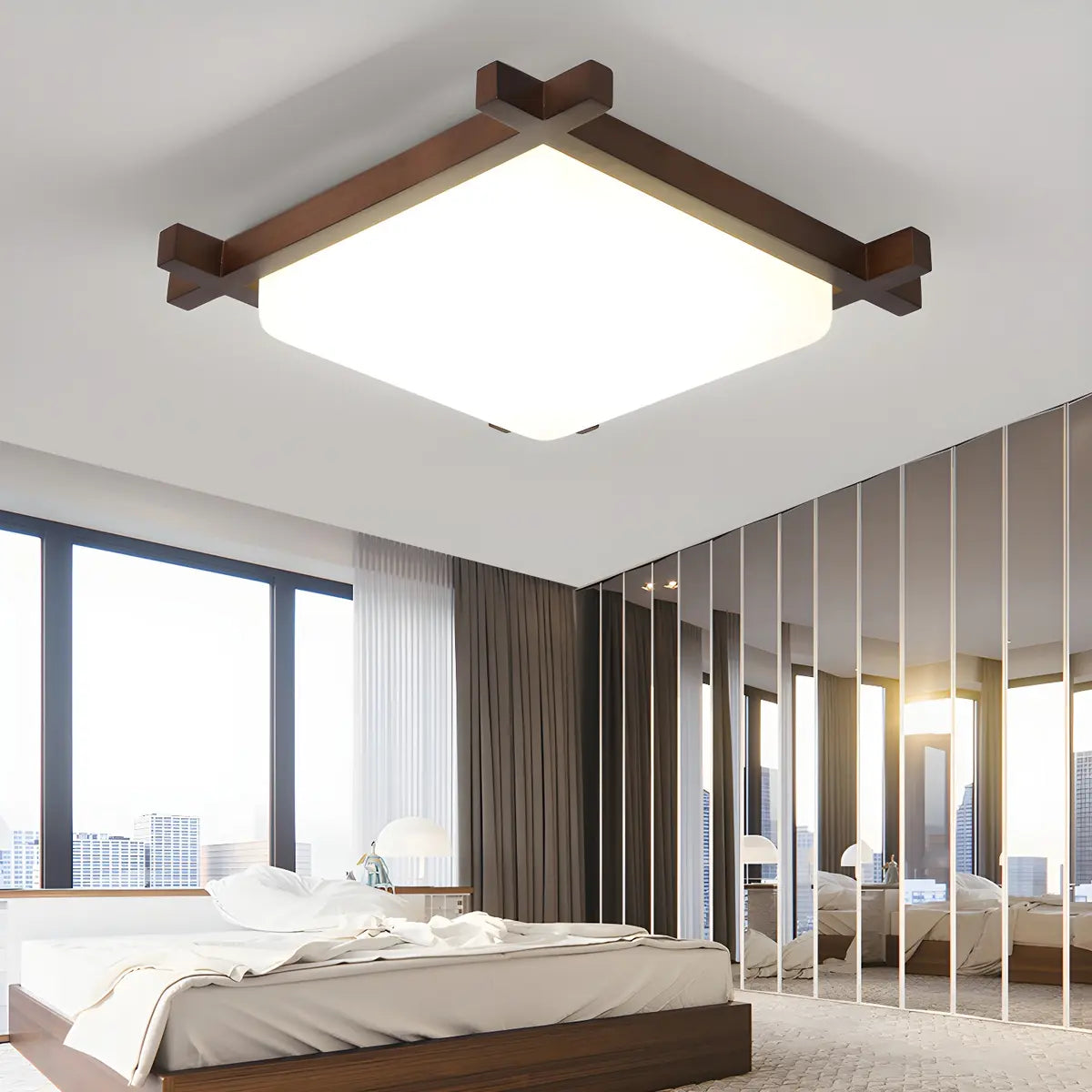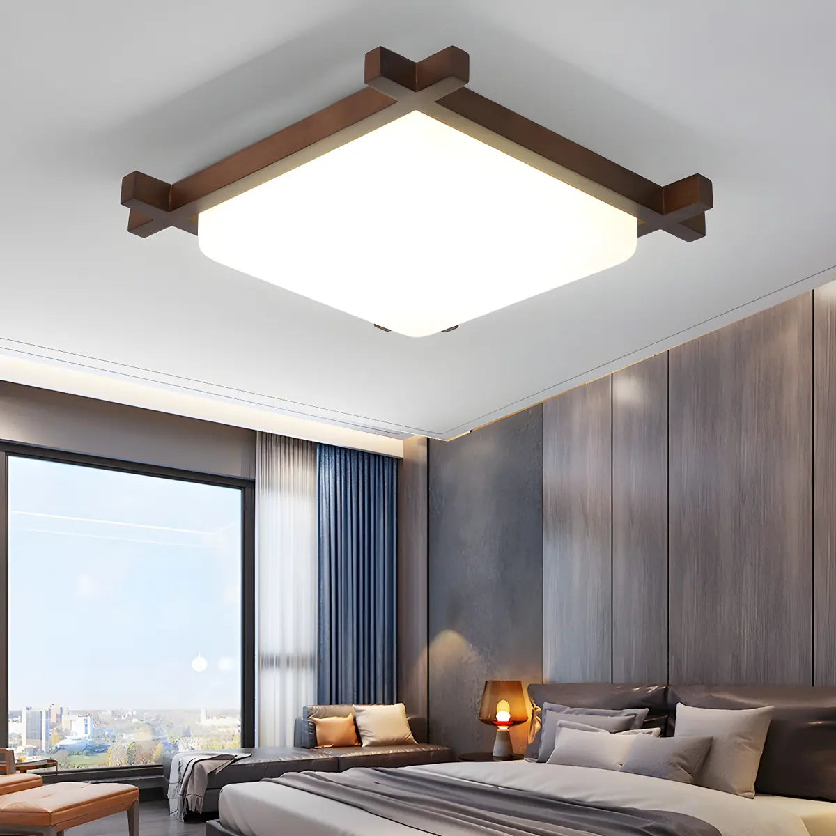 This recessed ceiling lamp adopts an elegant square design and is made of walnut wood as the main material, exuding a natural and warm atmosphere. It blends perfectly with modern homes and enhances the decorative beauty of the interior space.