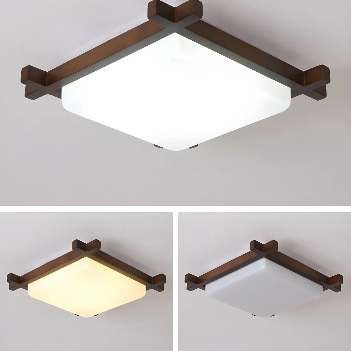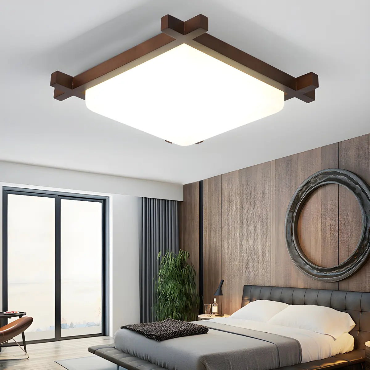 ZOWALA - Walnut Wood Square Bedroom Flush Mount Lamp