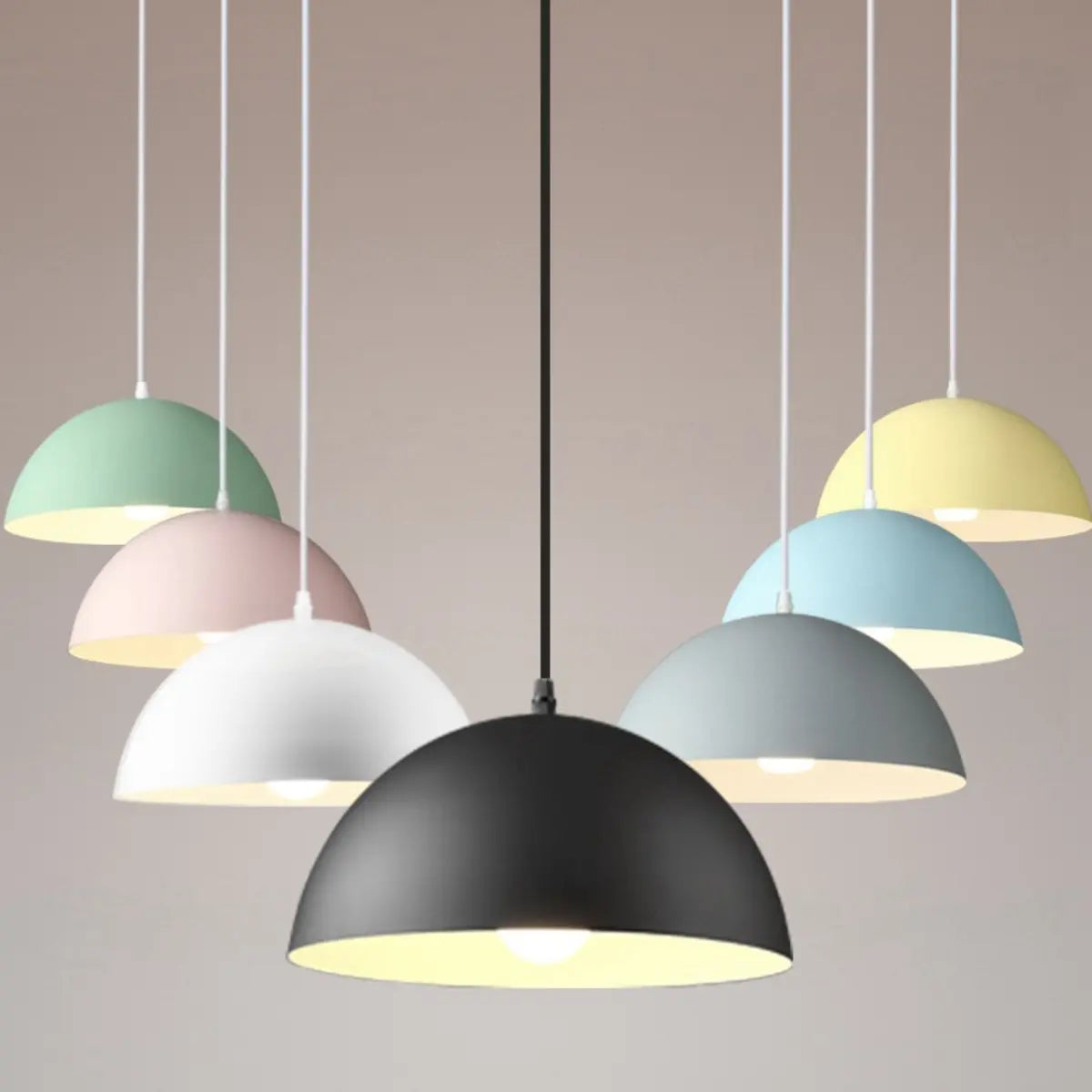 This modern and simple aluminum chandelier has smooth lines, bright colors, and a unique lampshade design, which cleverly combines simplicity and fashion. The hemispherical lampshade is not only decorative, but also reflects the aesthetic concept of minimalism, creating a comfortable and pleasant atmosphere for the room.