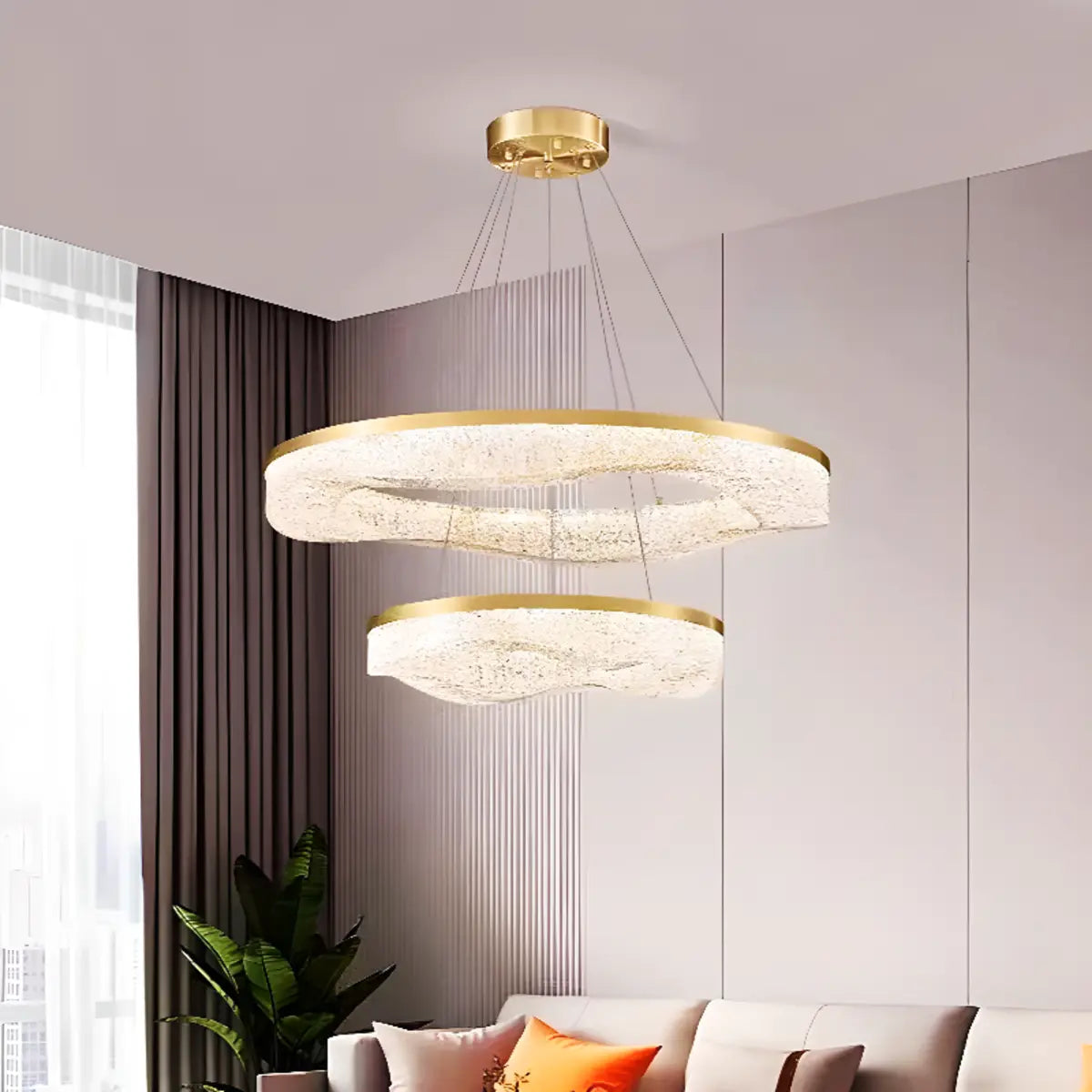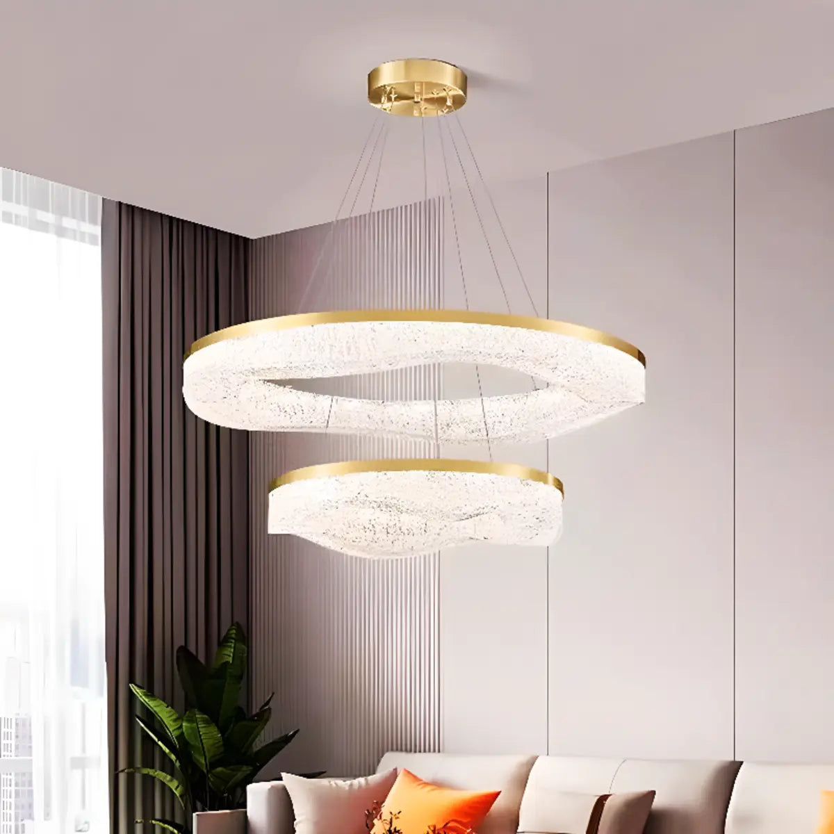 ZOWALA - Modern Wave Resin 2-Tier Circle LED Chandelier