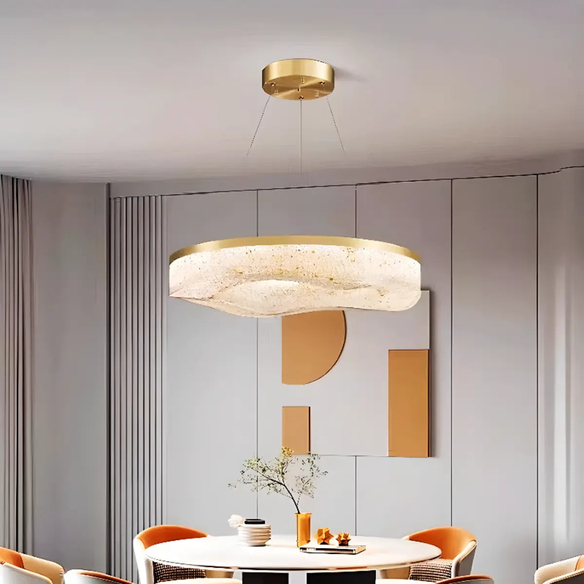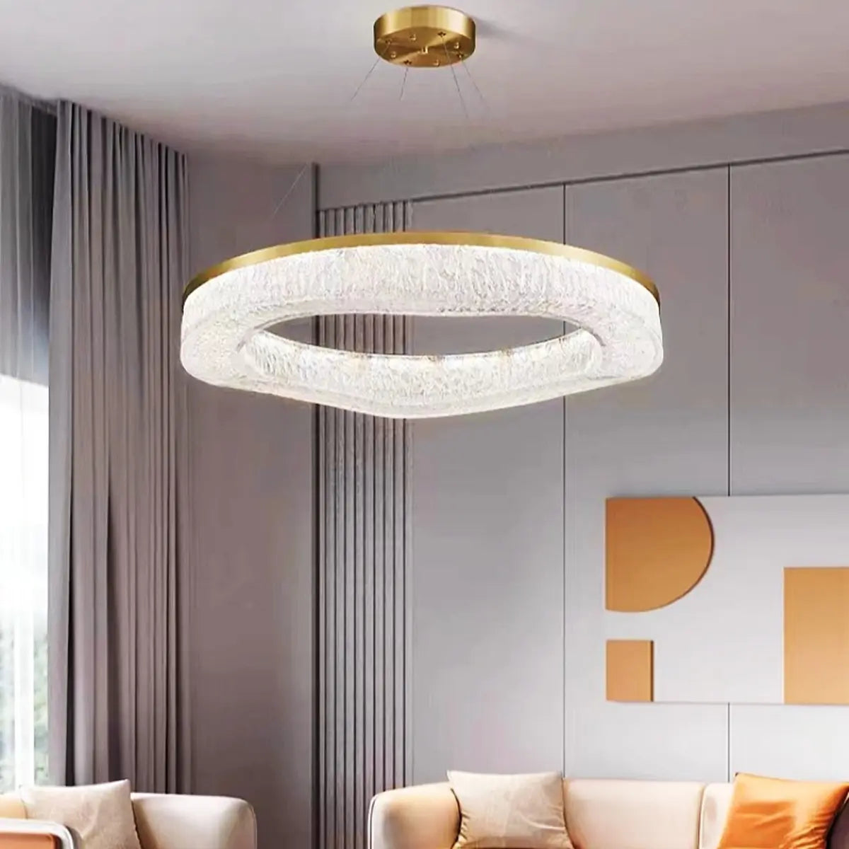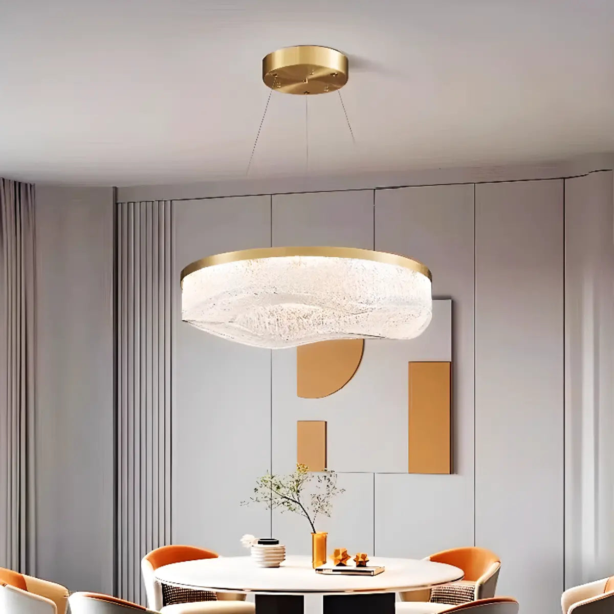 The ZOWALA Wave Circle modern pendant lamp injects luxury and modernity into any space with its unique double-layered wave design and gold metal structure. Whether it is a living room, dining room, or a modern office, this pendant lamp will become a focal point.