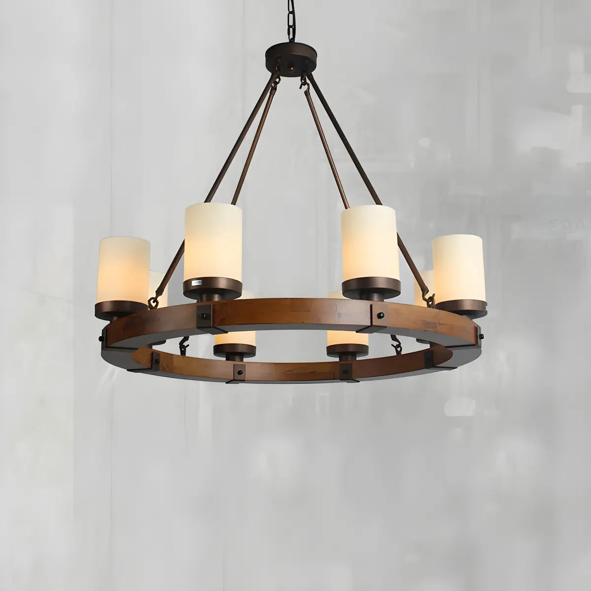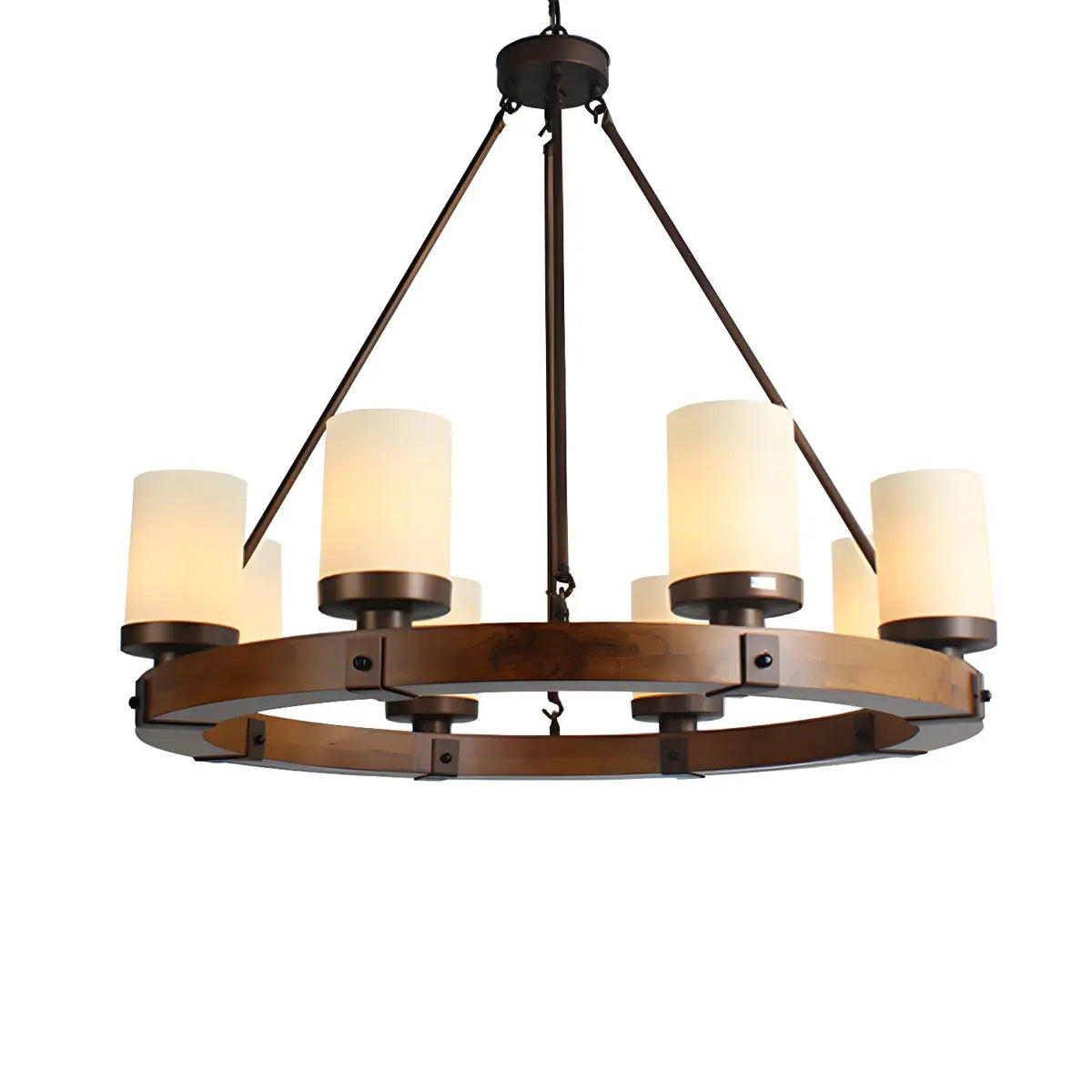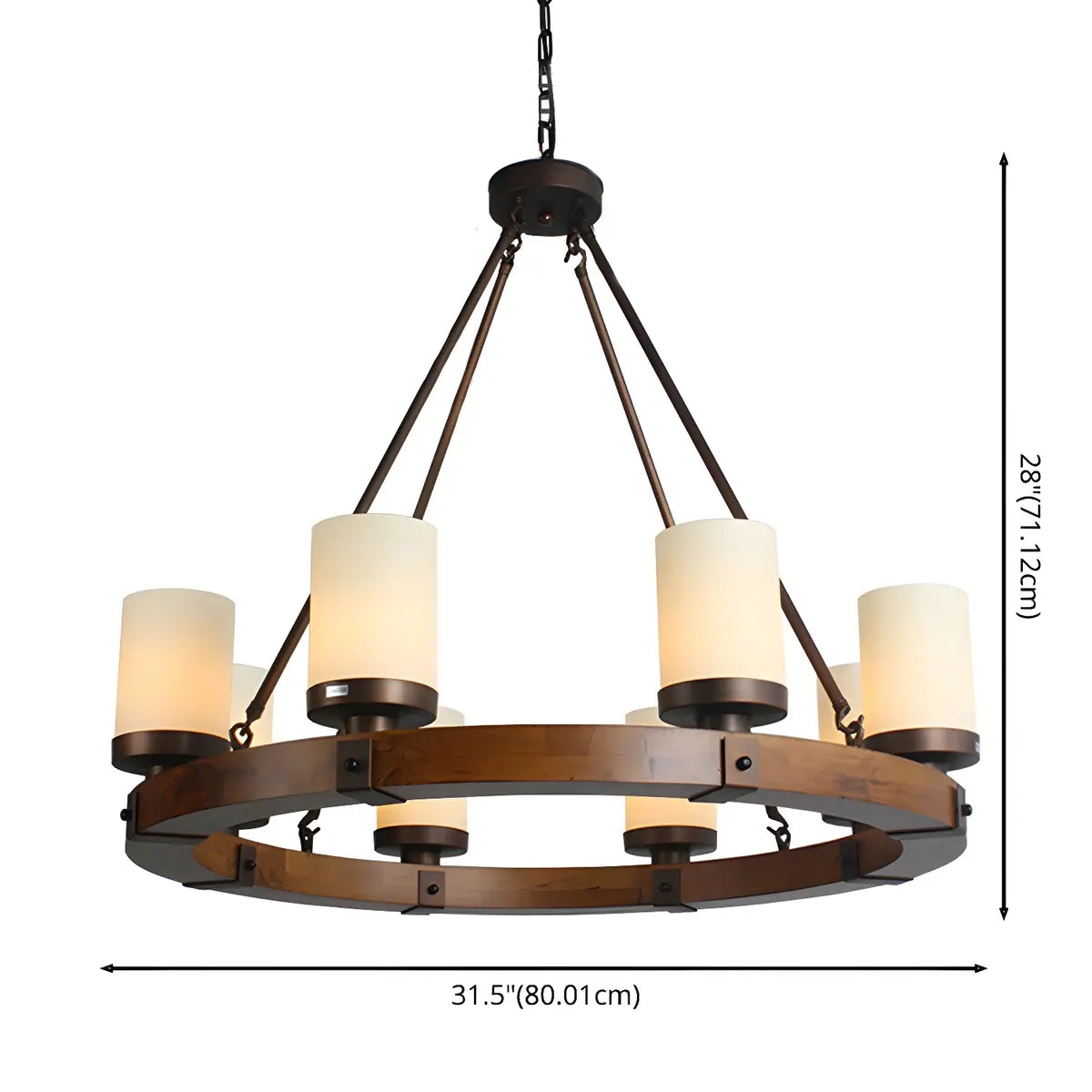 ZOWALA - Brown Wheel Glass Cylinder Farmhouse Chandelier