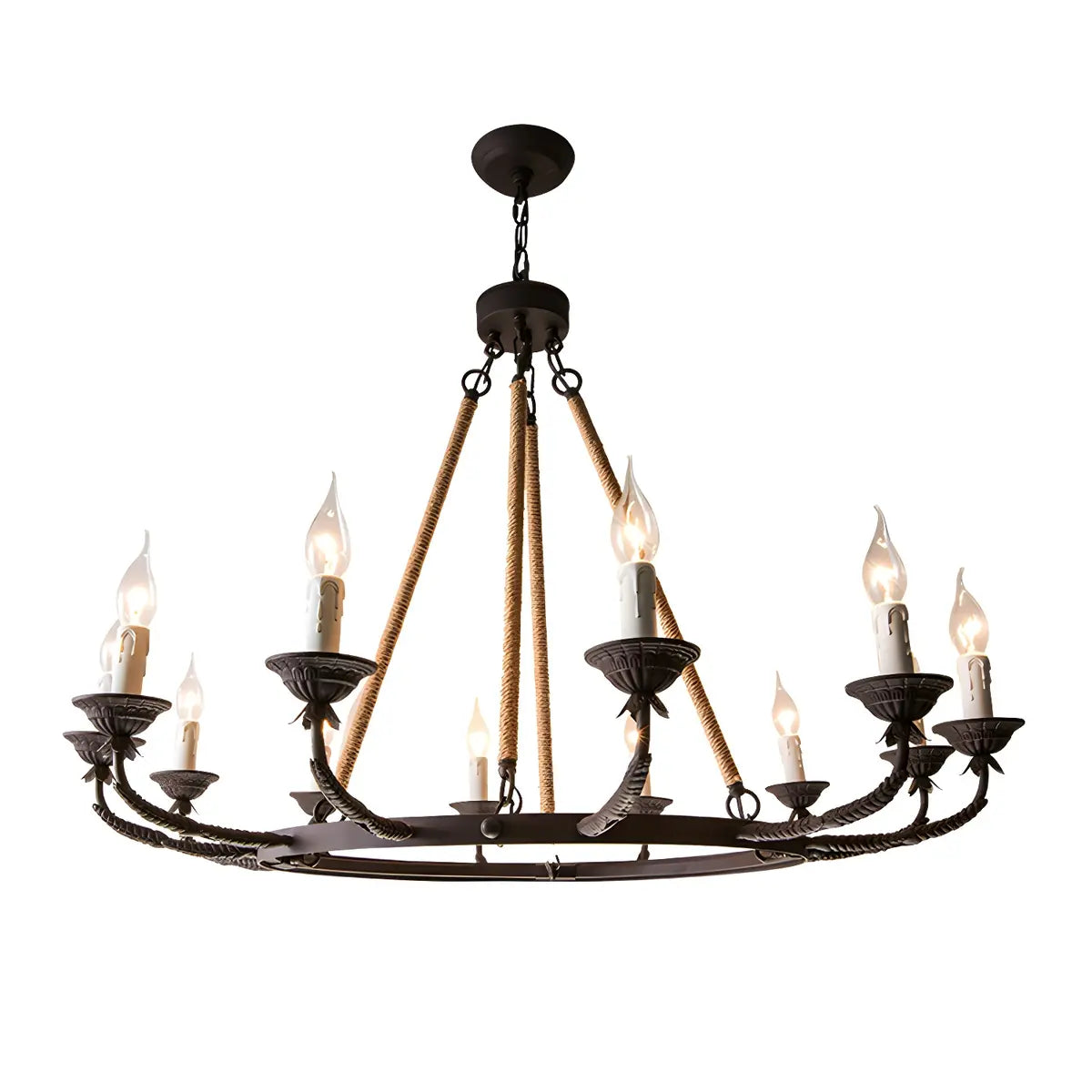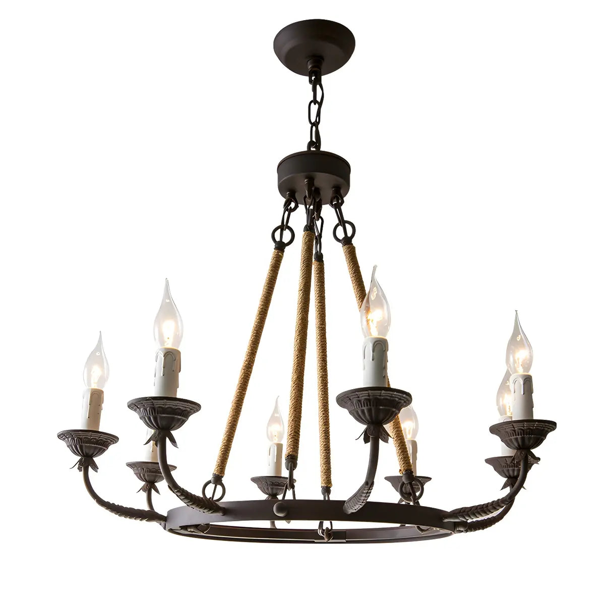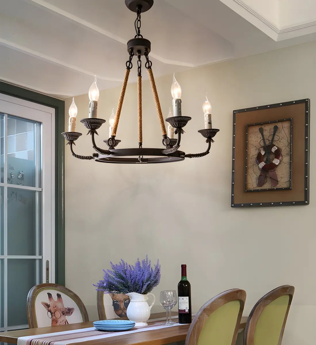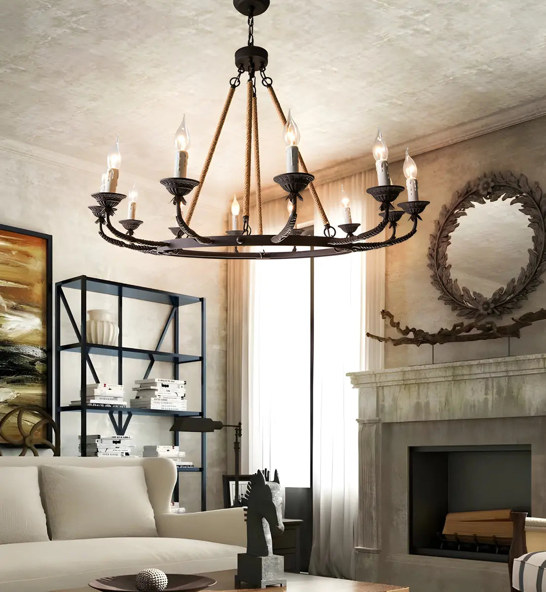 This ZOWALA pastoral-style chandelier adopts a delicate wheel rope design and combines multiple candlestick bulbs to create a visual effect that perfectly blends traditional and industrial styles. It is suitable for large living rooms or restaurants and becomes the focus of the room.