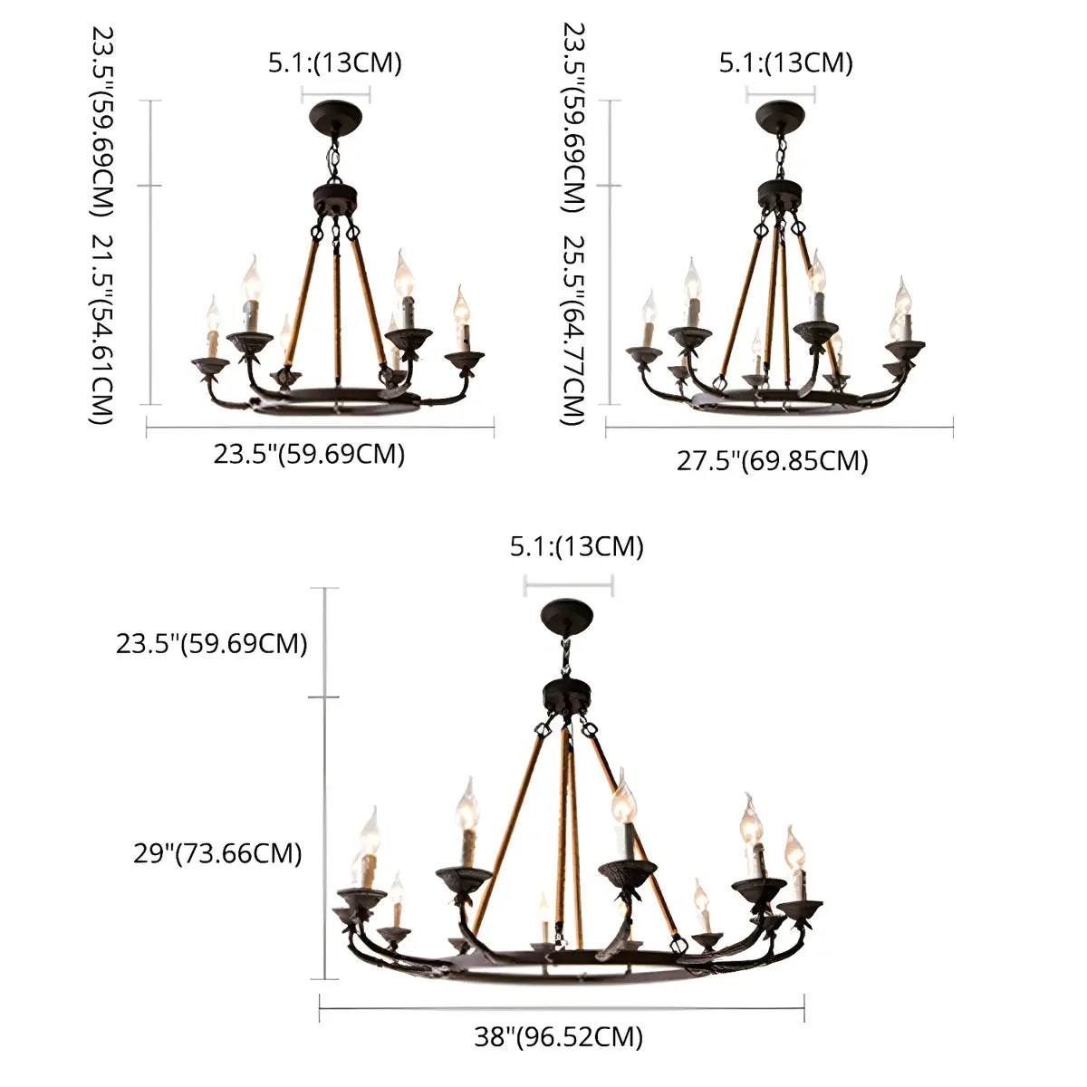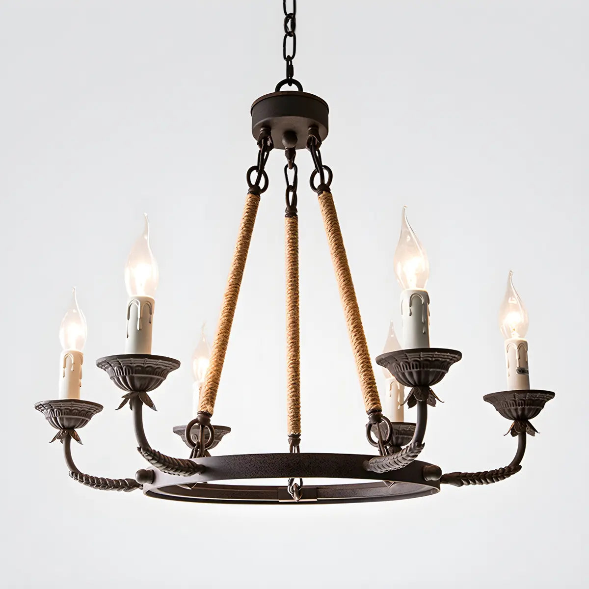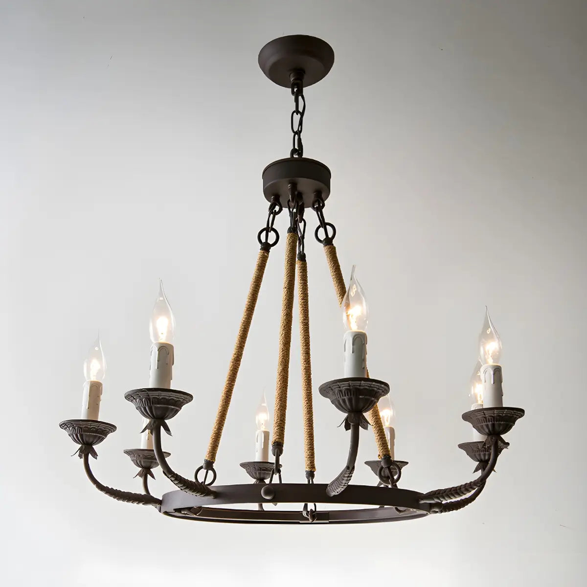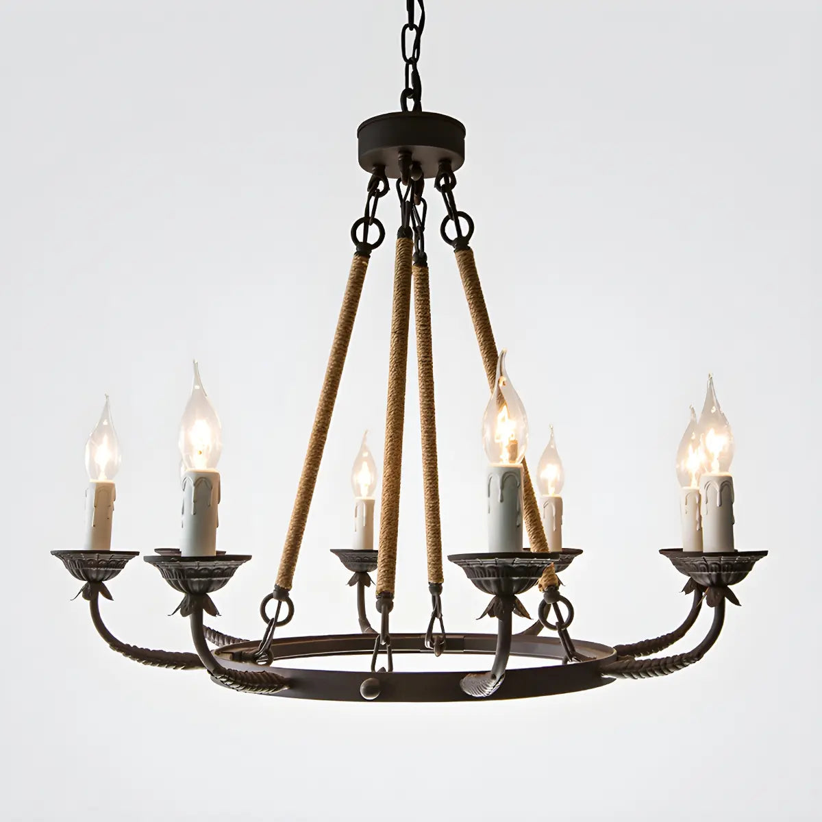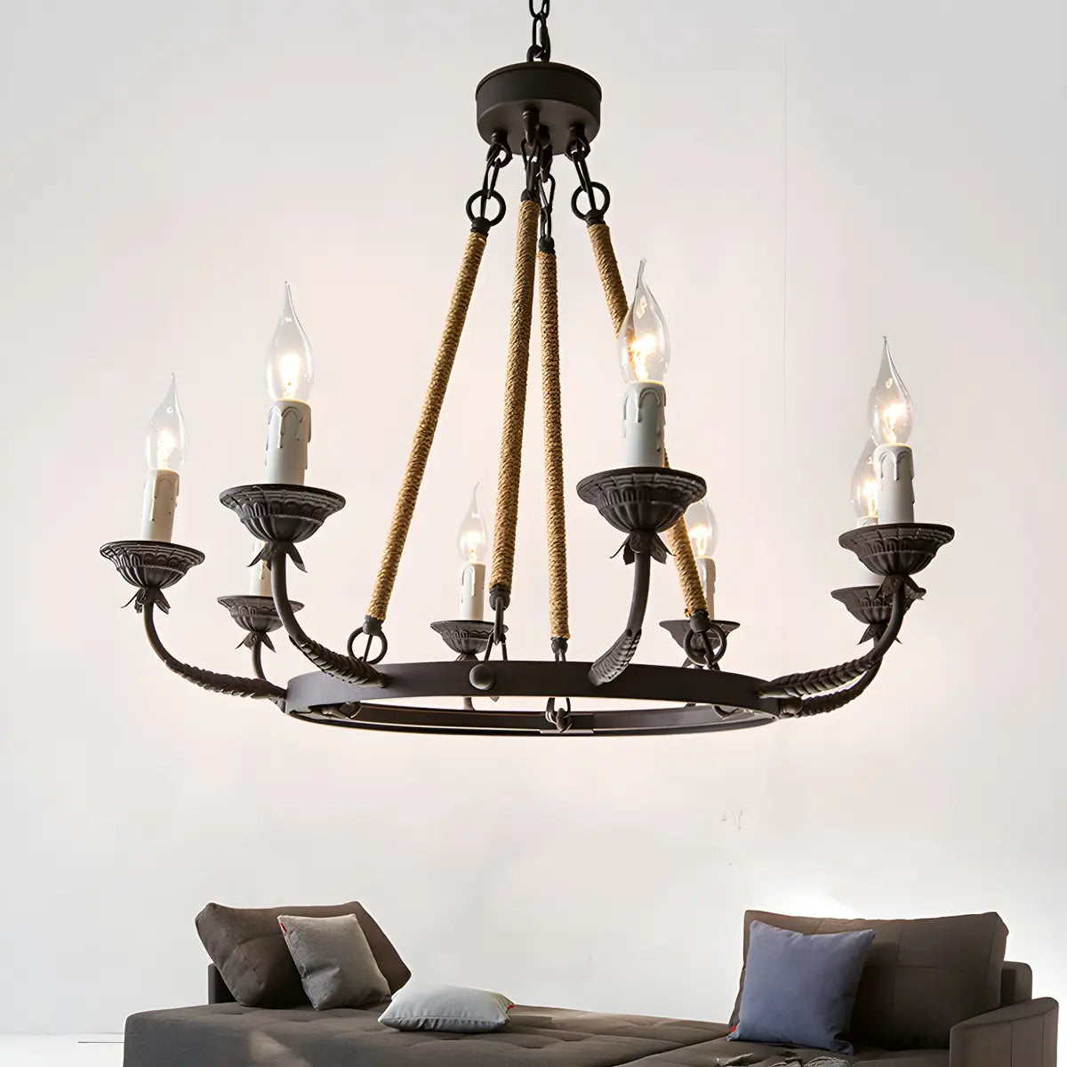 This ZOWALA pastoral-style chandelier adopts a delicate wheel rope design and combines multiple candlestick bulbs to create a visual effect that perfectly blends traditional and industrial styles. It is suitable for large living rooms or restaurants and becomes the focus of the room.