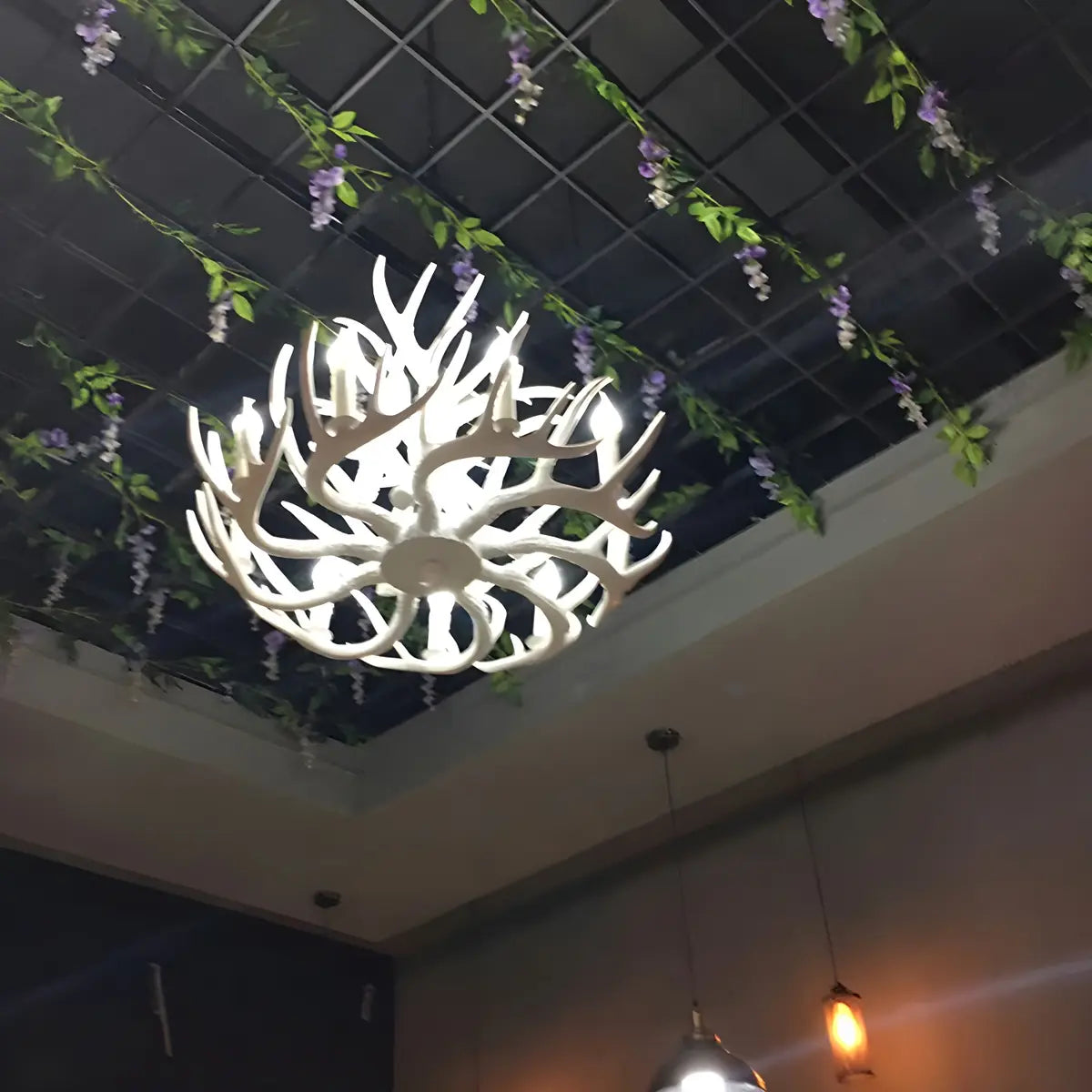 This geometric modern style antler chandelier integrates the elegance of nature into interior design and is the perfect choice to enhance the atmosphere of your living space. With its unique white antler shape and metal material, it adds a unique visual impact to the room.