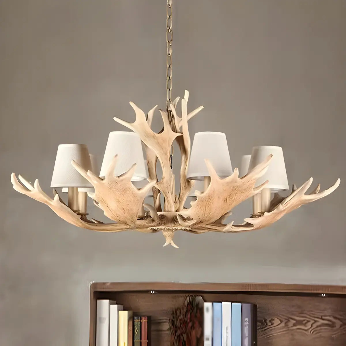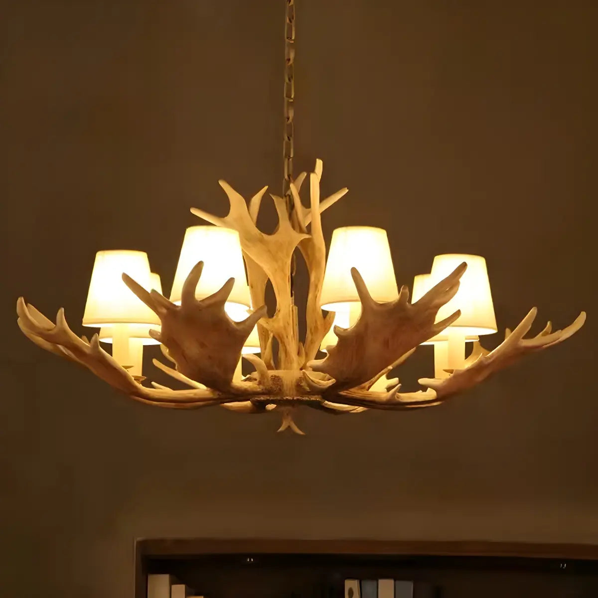 This ZOWALA rustic horn chandelier adds a natural and warm atmosphere to any space. Made of resin, the delicate antler shape is paired with a soft fabric lampshade, allowing the light to cast a soft glow through the pure fabric.