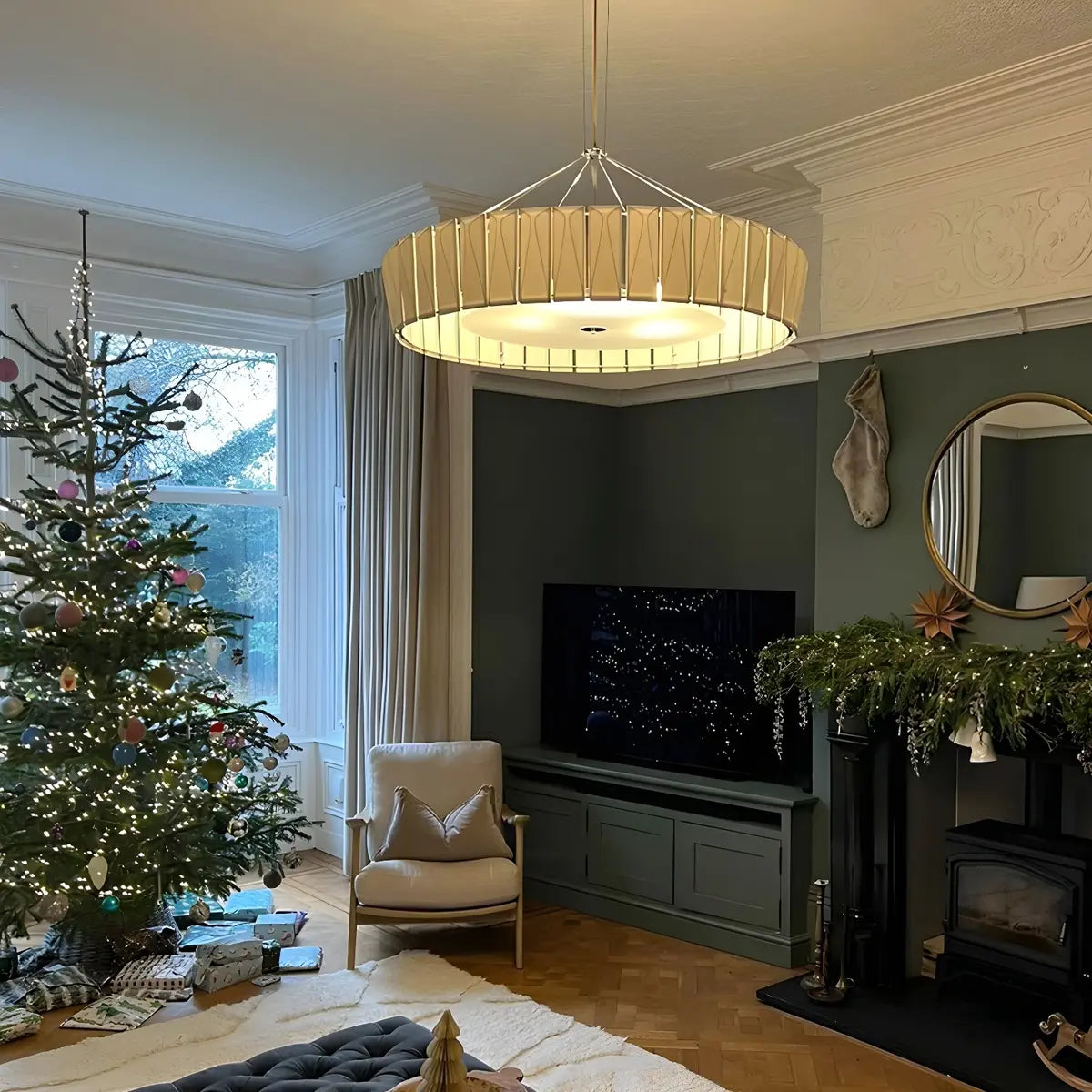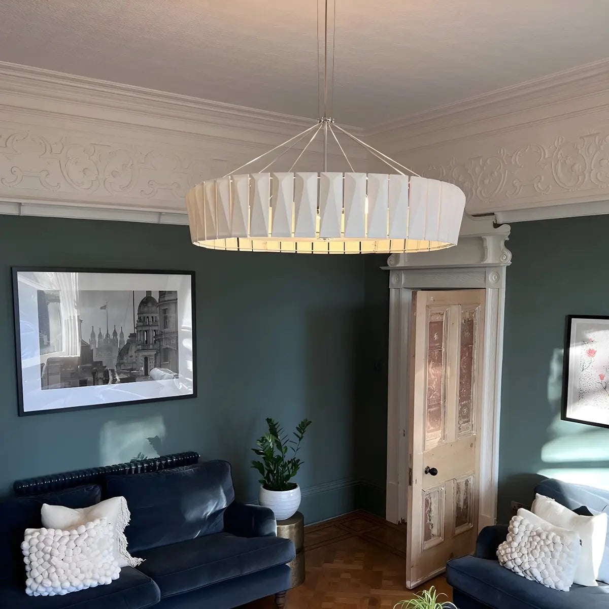 This modern drum chandelier perfectly combines classic design with modern elements, giving any living space a noble and elegant atmosphere. Its adjustable height design allows it to adapt to different ceiling heights in both the living room and the dining room to provide the best lighting effect.