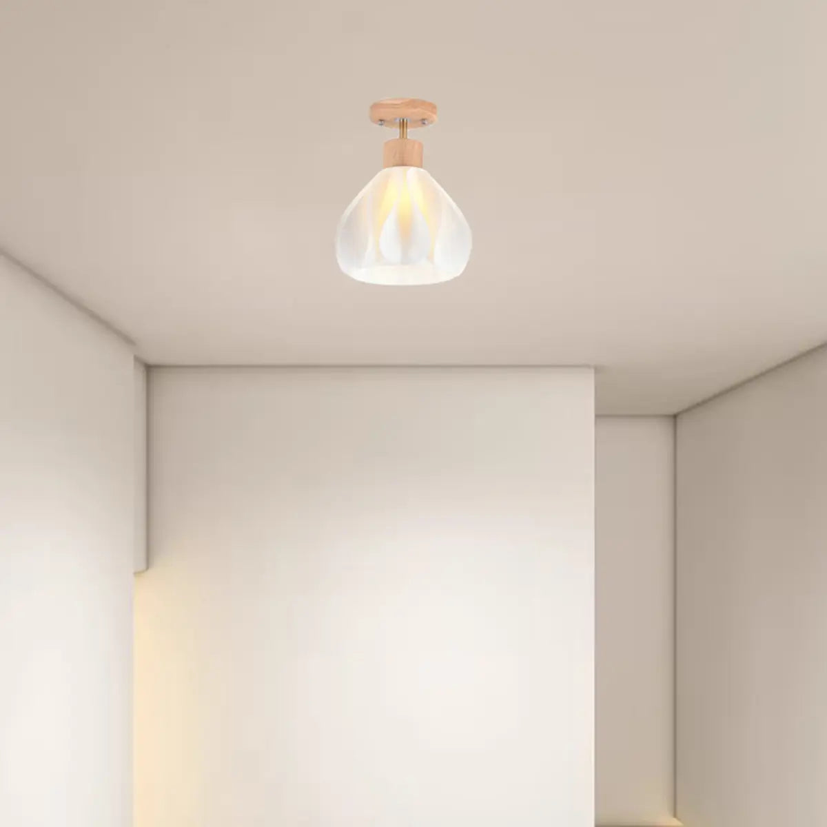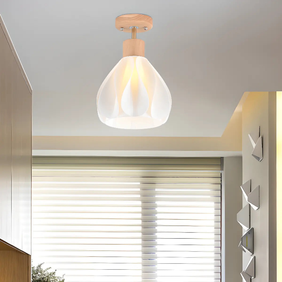 ZOWALA - Natural Wood White Plastic Semi-Flush Mount Light