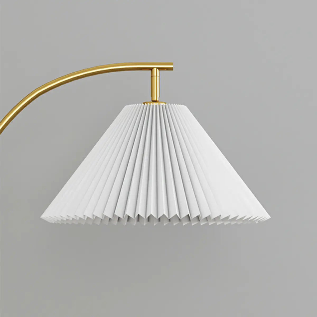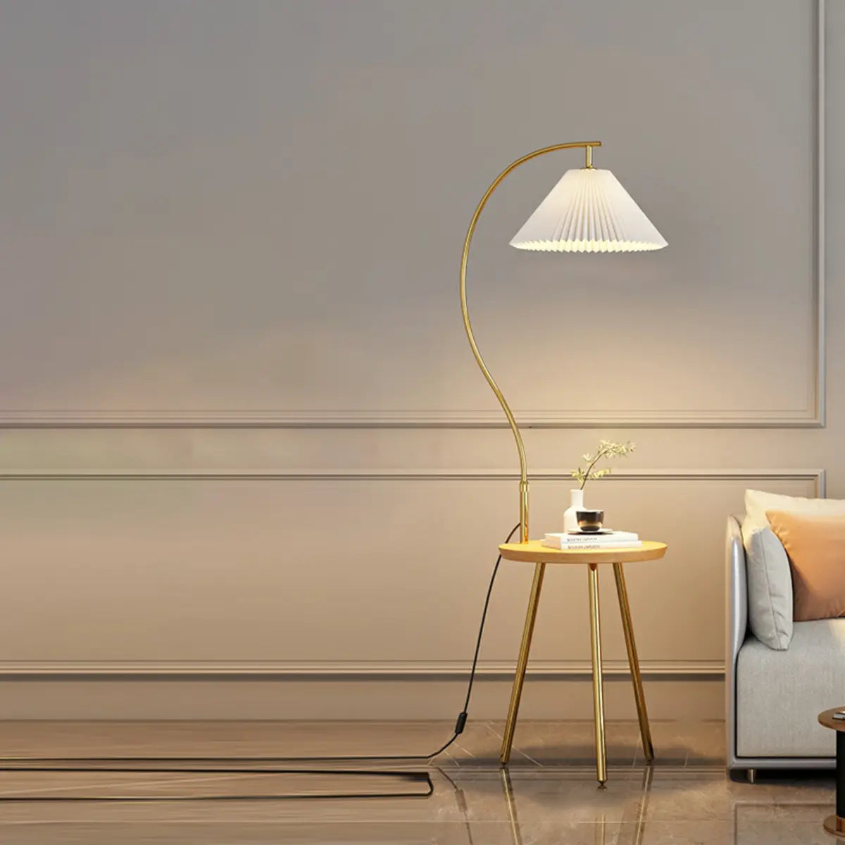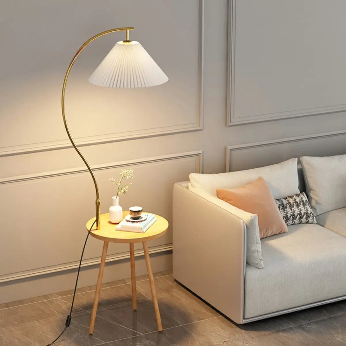 ZOWALA - White Fabric Curved Gold Floor Lamp with Table