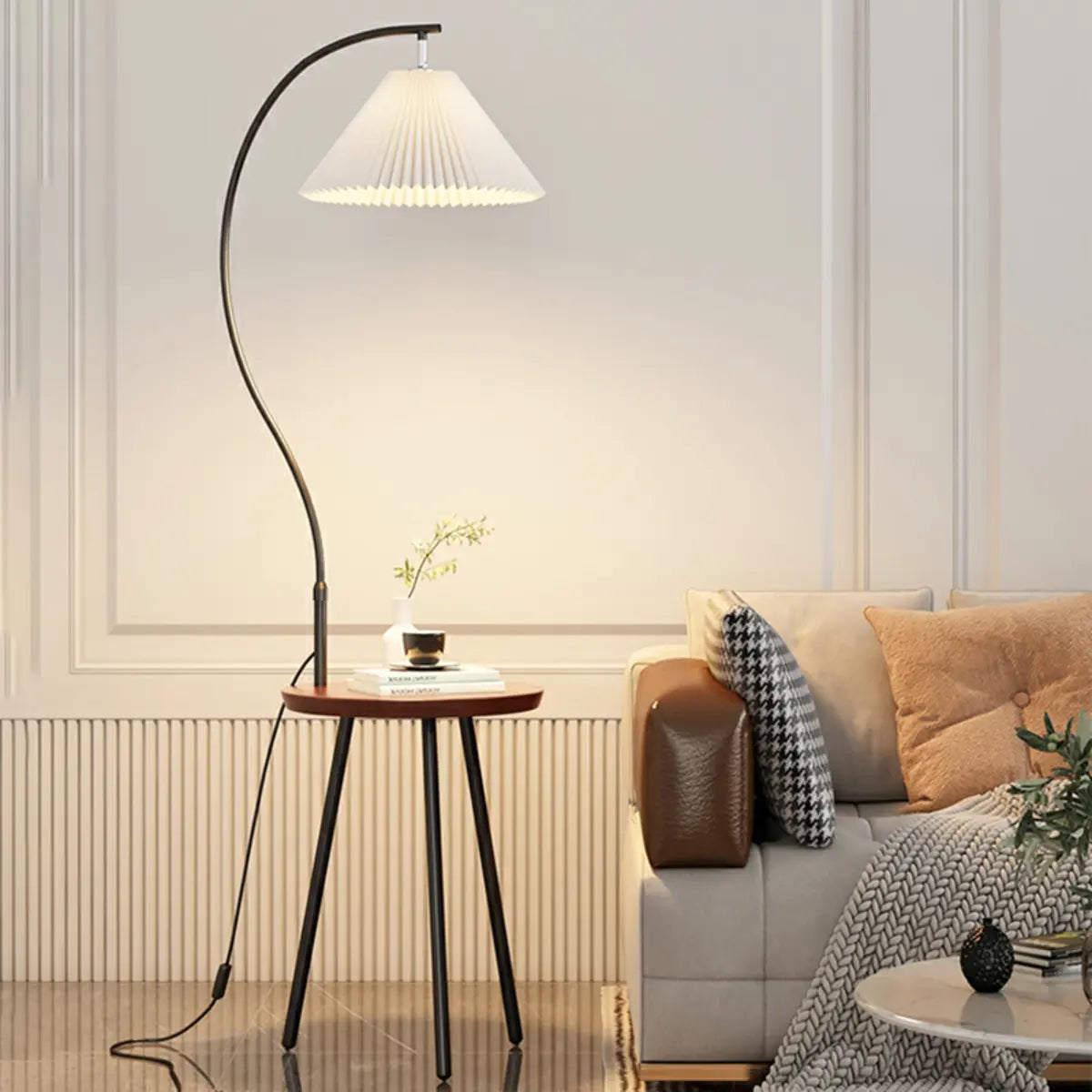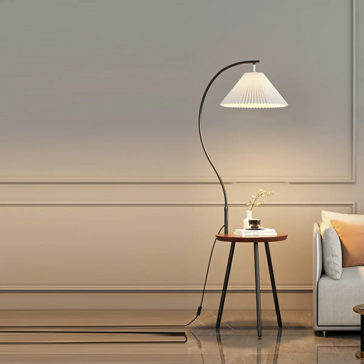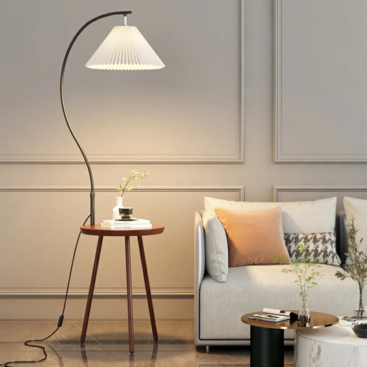 ZOWALA - White Fabric Curved Gold Floor Lamp with Table