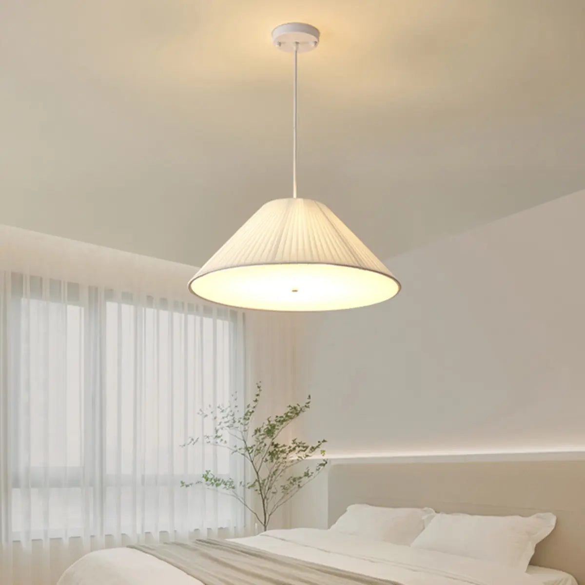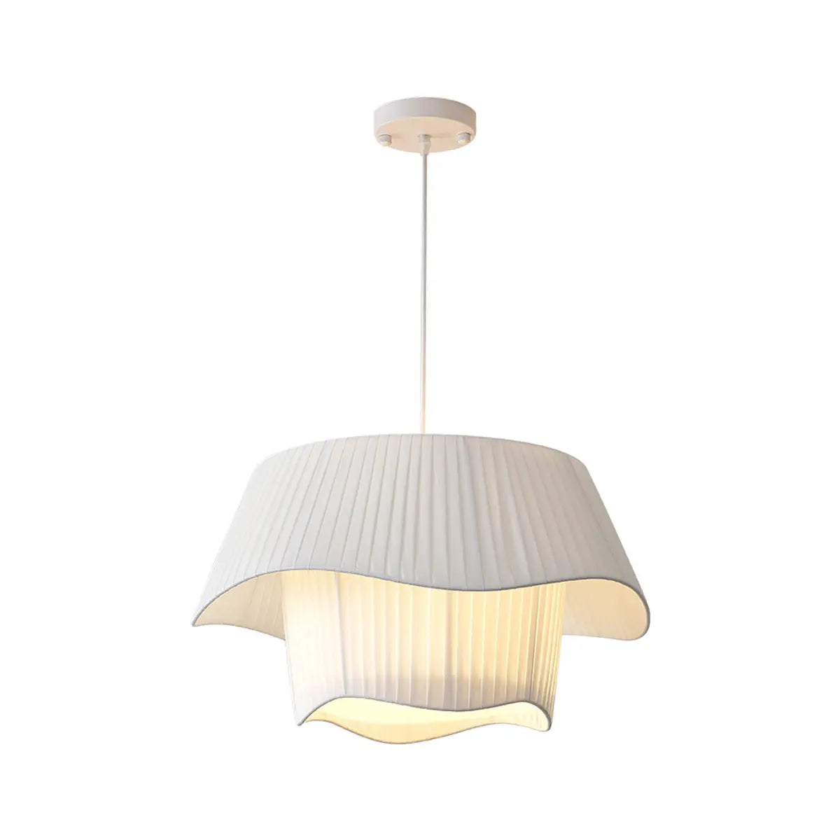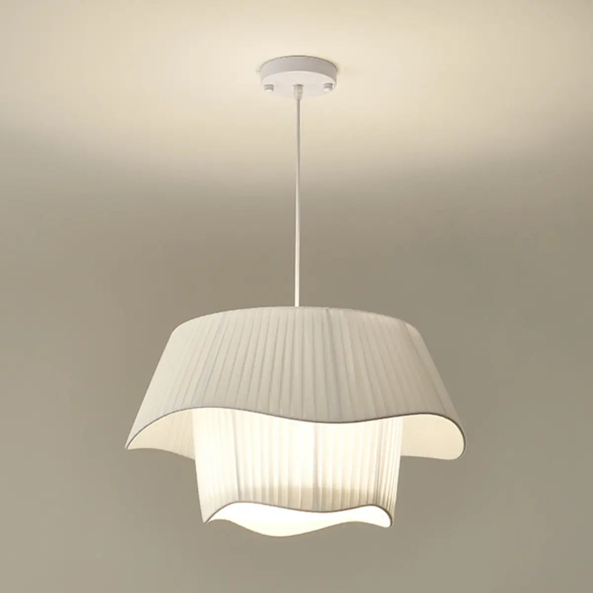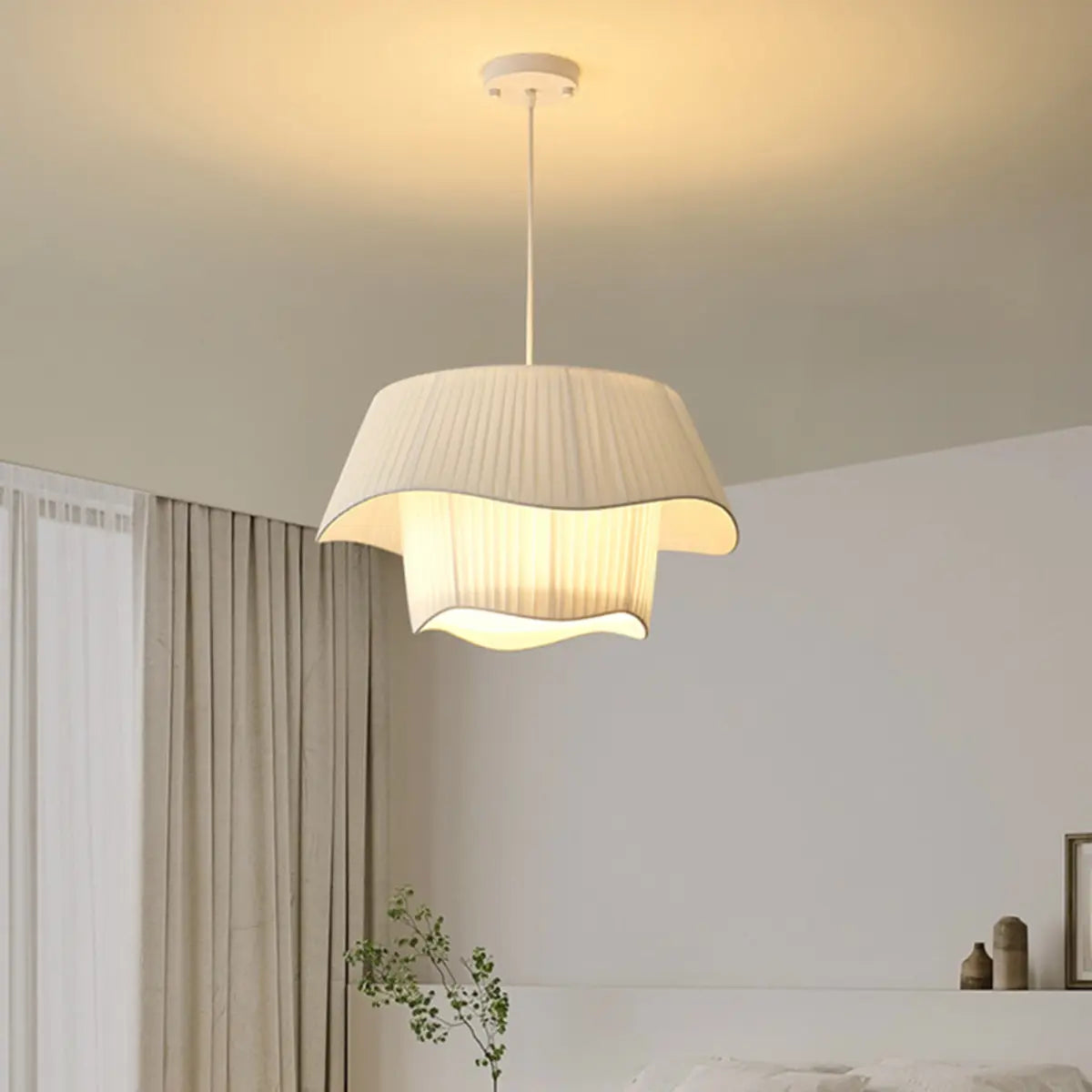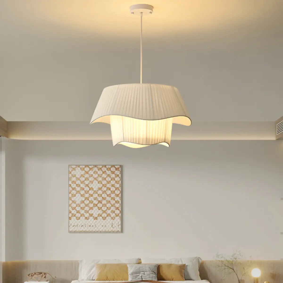 This modern geometric design white fabric pendant lamp injects a touch of contemporary art into any space with its elegant look and soft light.