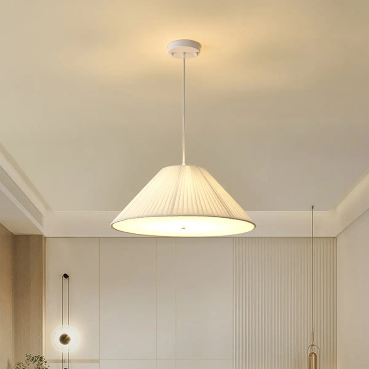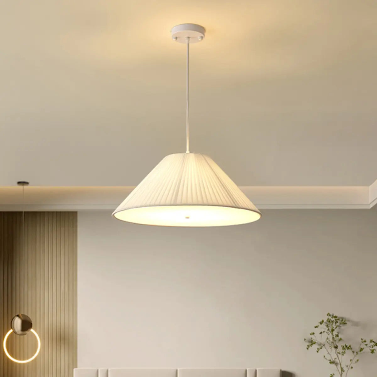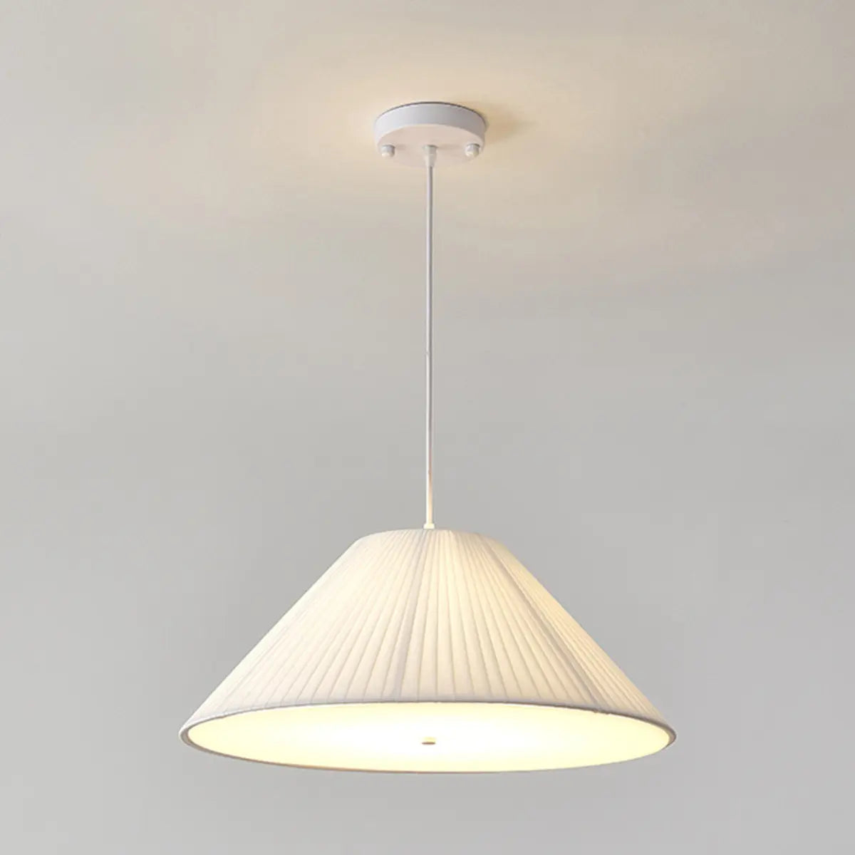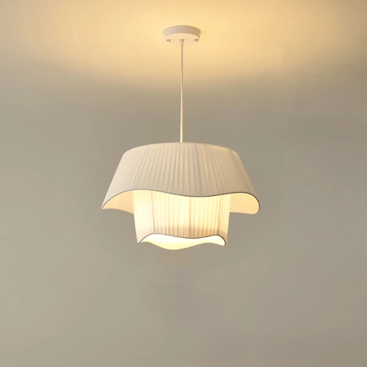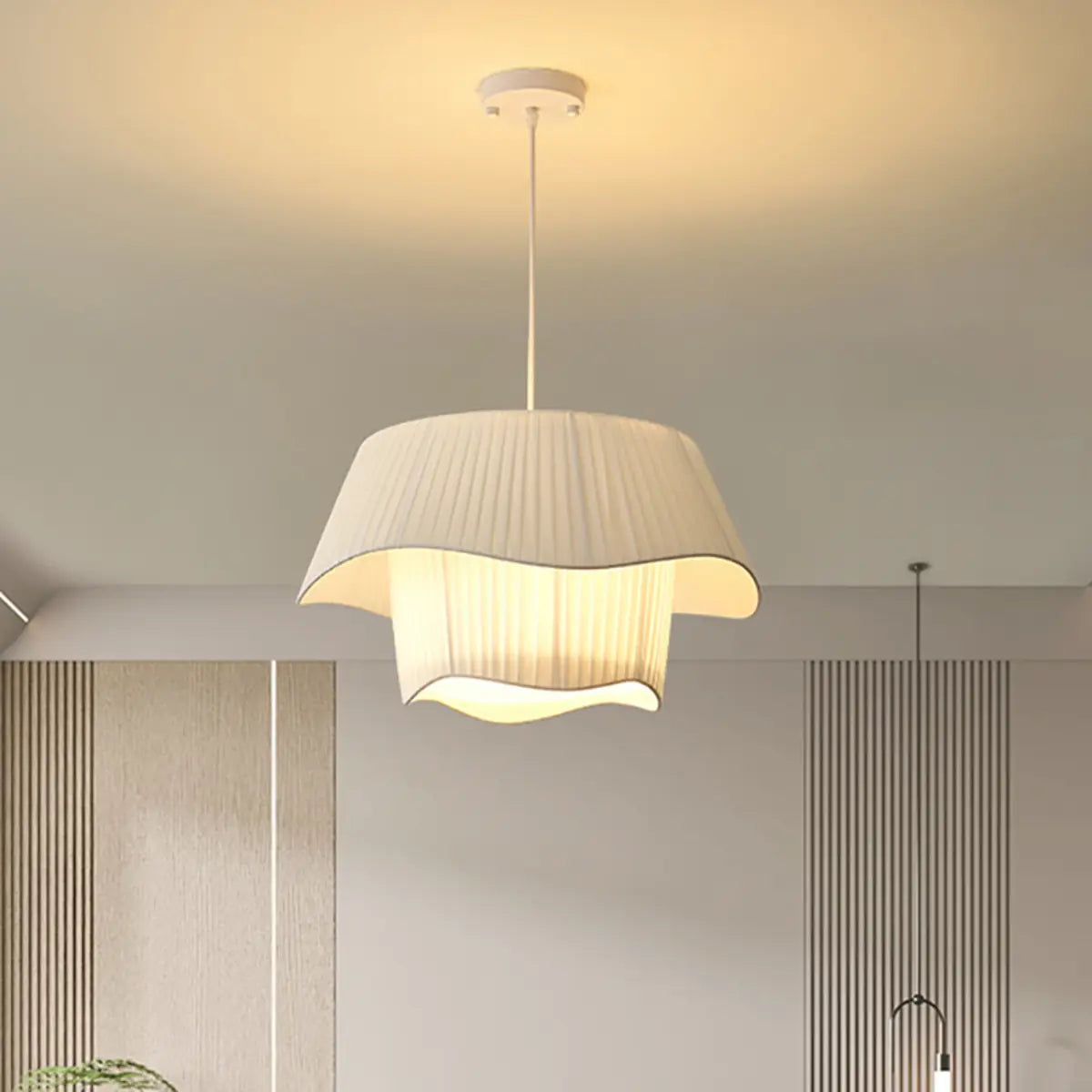 This modern geometric design white fabric pendant lamp injects a touch of contemporary art into any space with its elegant look and soft light.