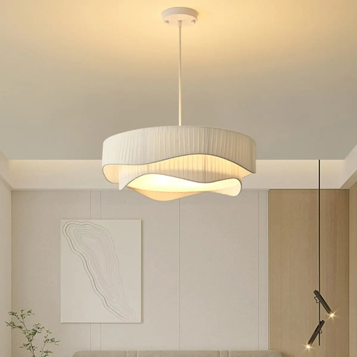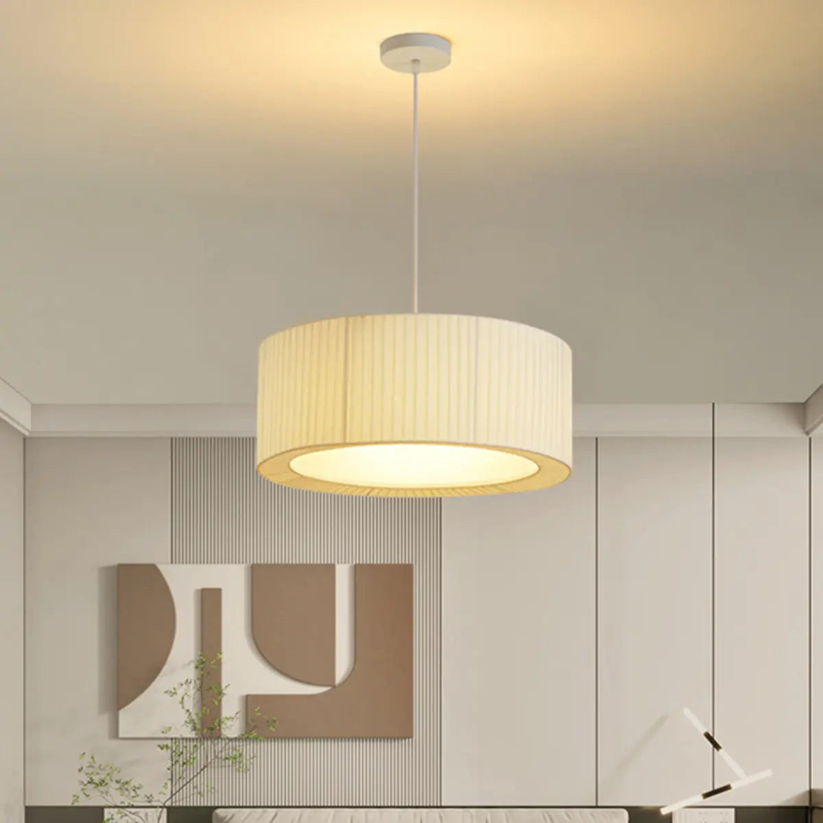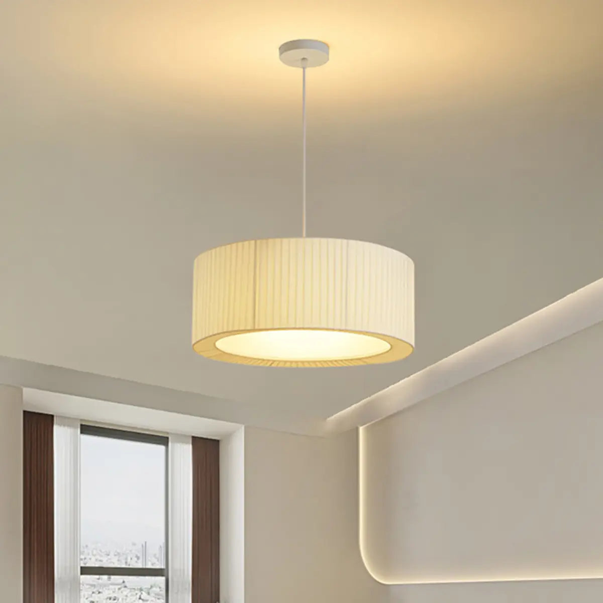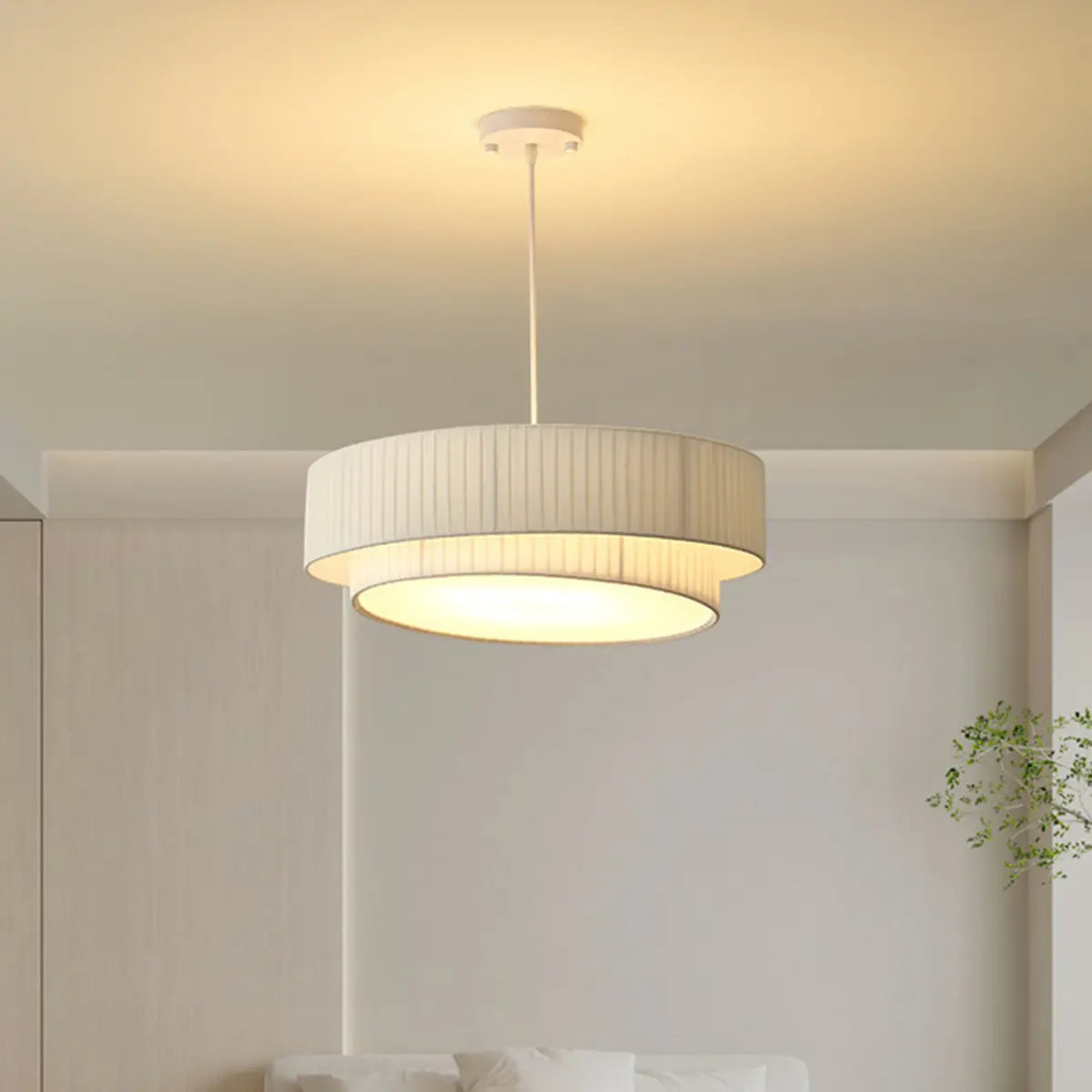 ZOWALA - Contemporary White Fabric Drum Ambient Chandelier