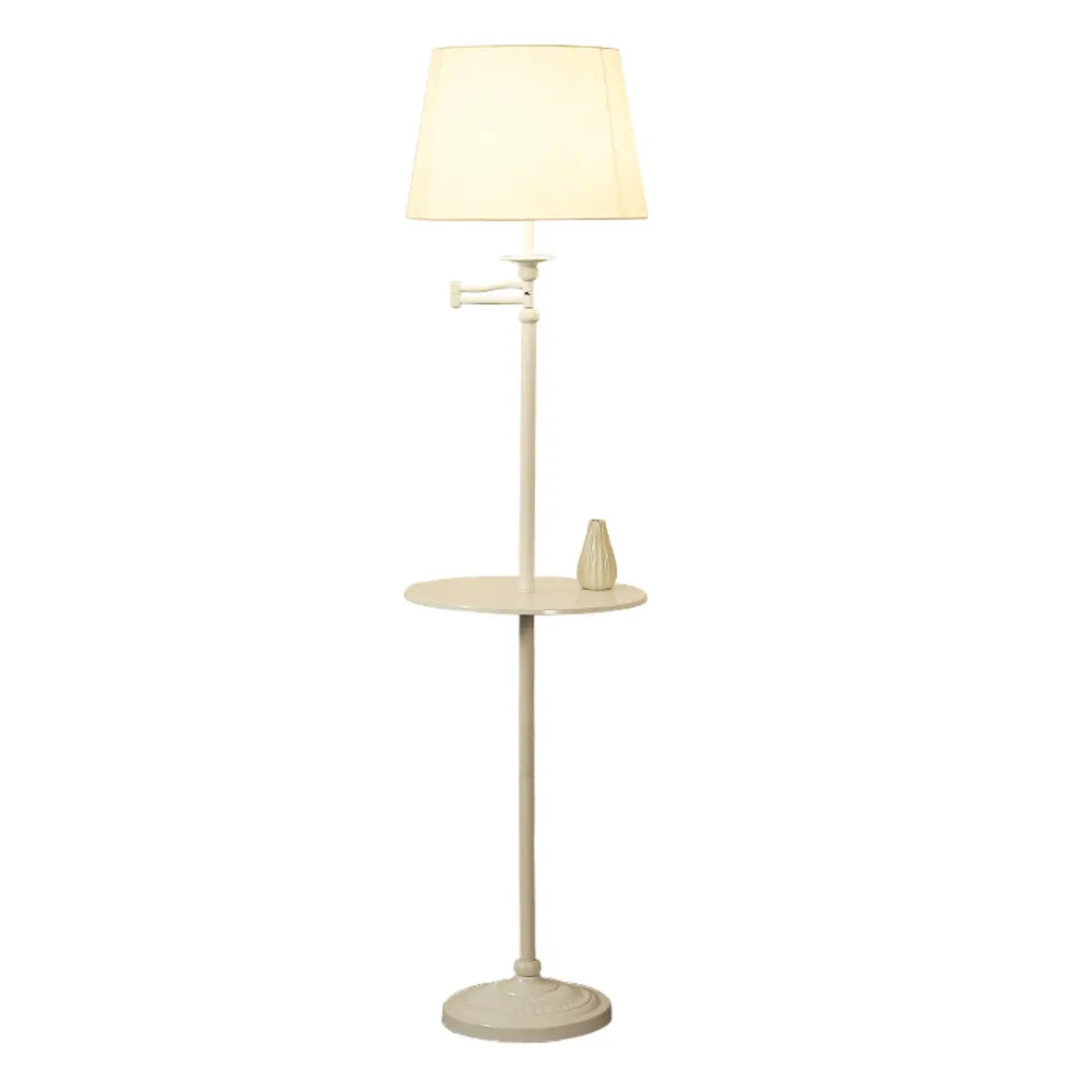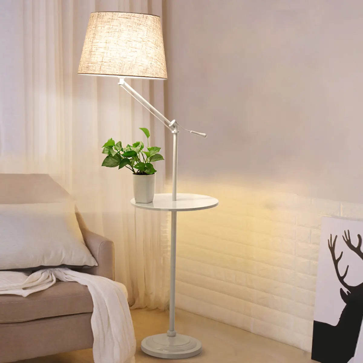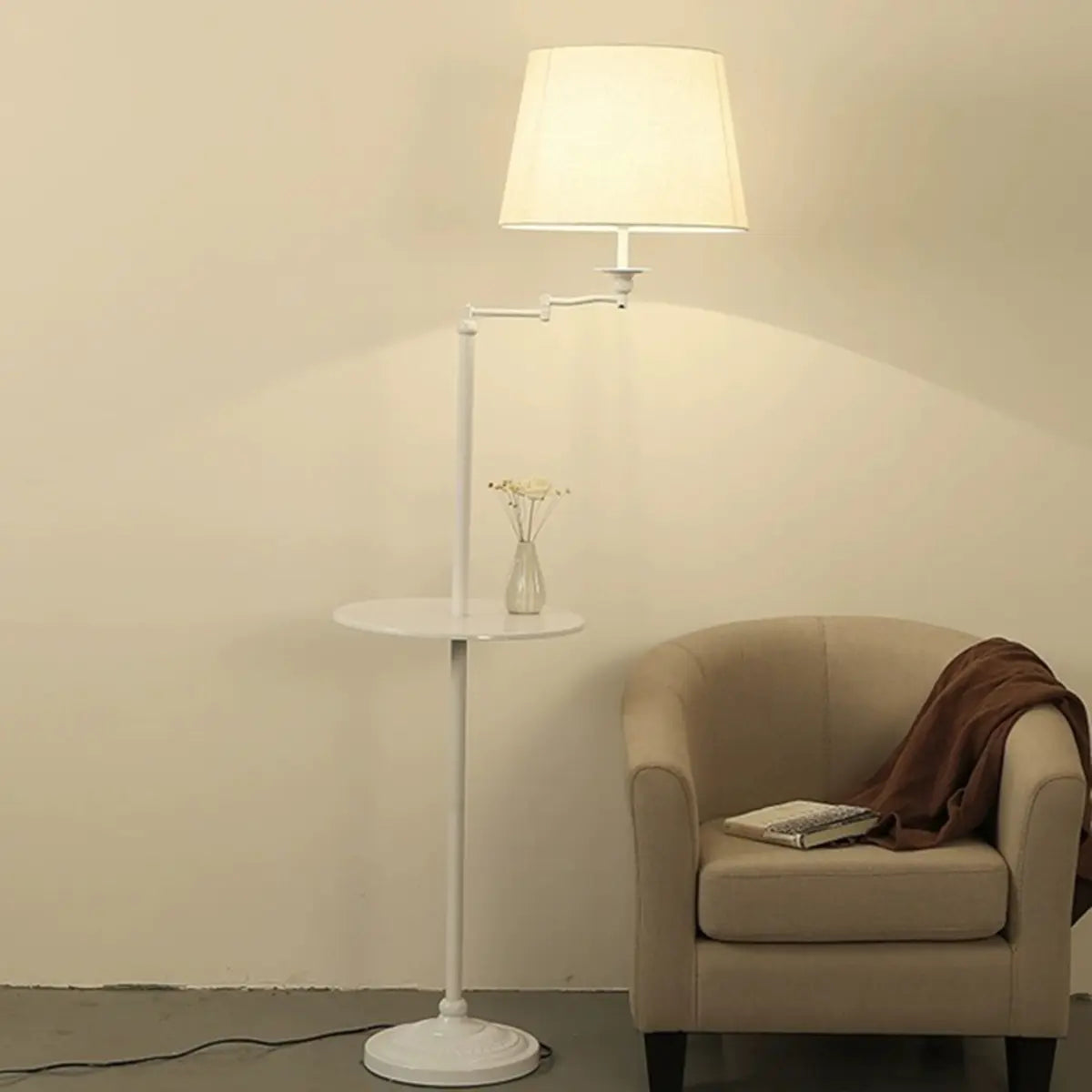 ZOWALA - White Fabric Swing Arm Floor Lamp with Side Table