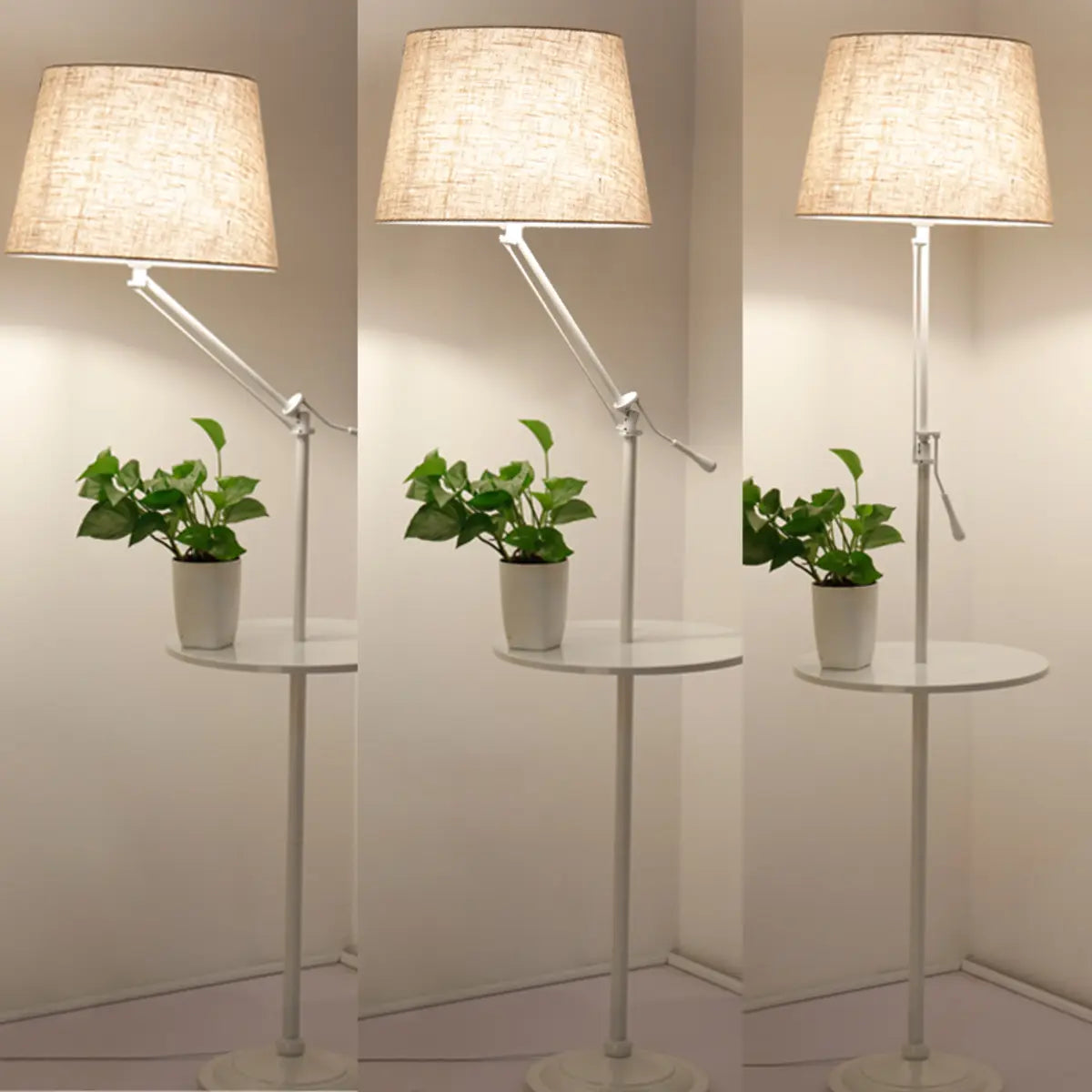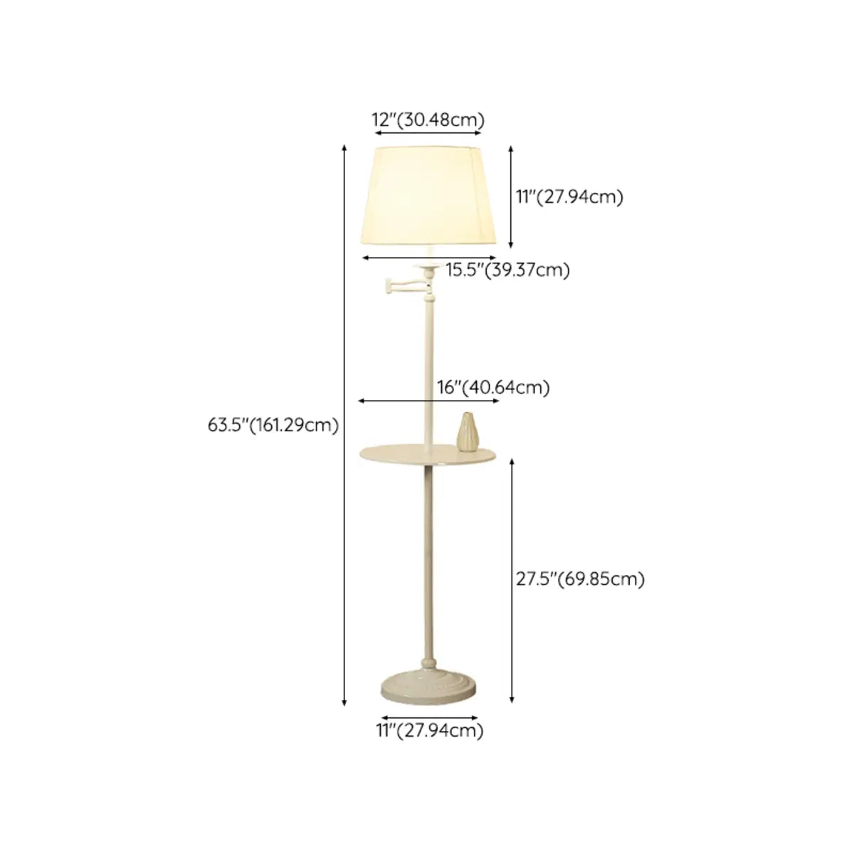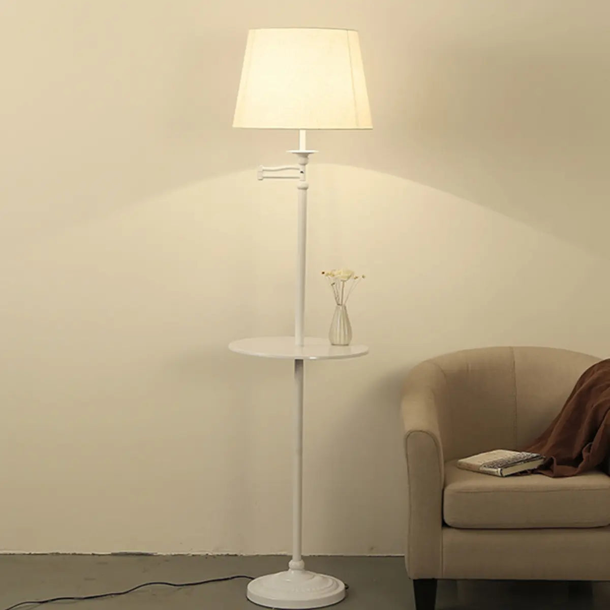 ZOWALA - White Fabric Swing Arm Floor Lamp with Side Table