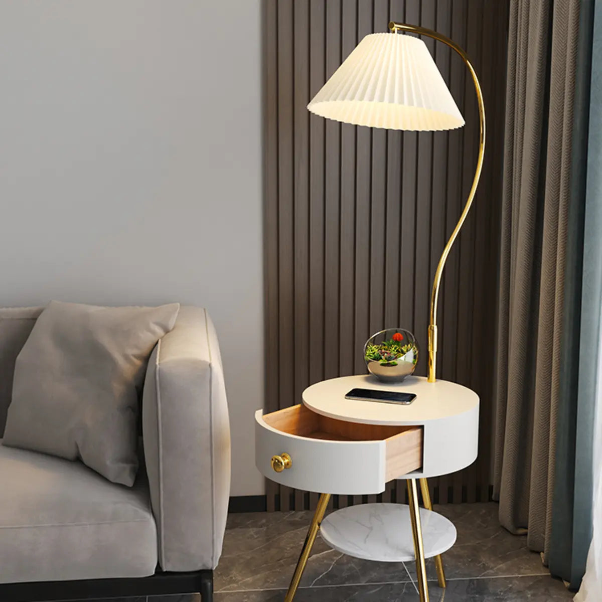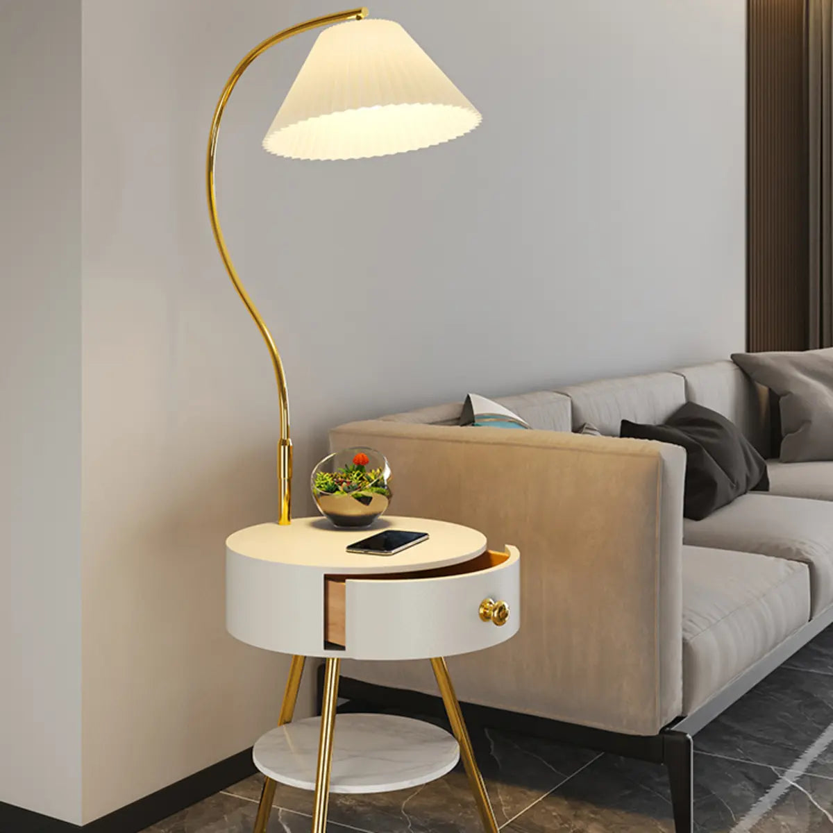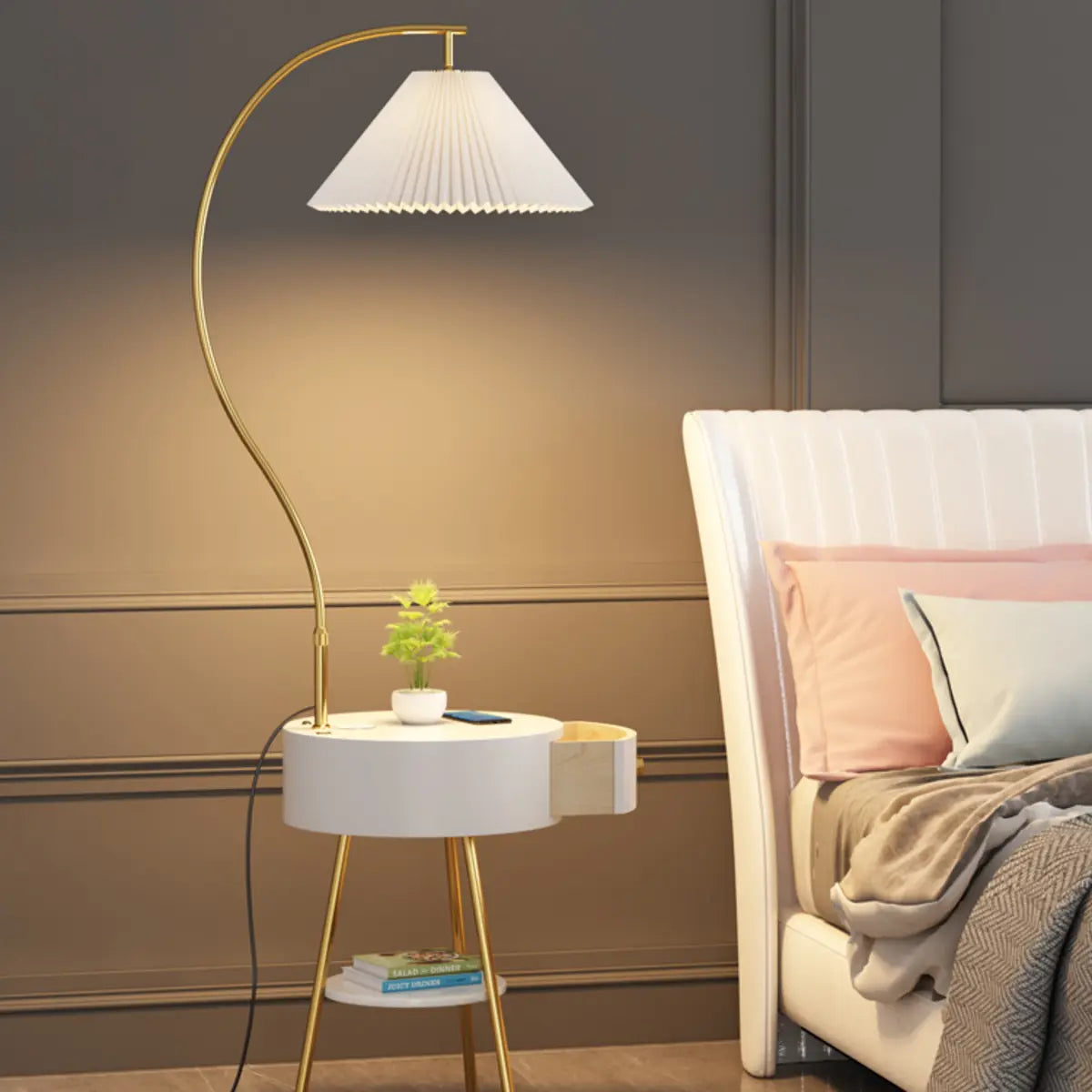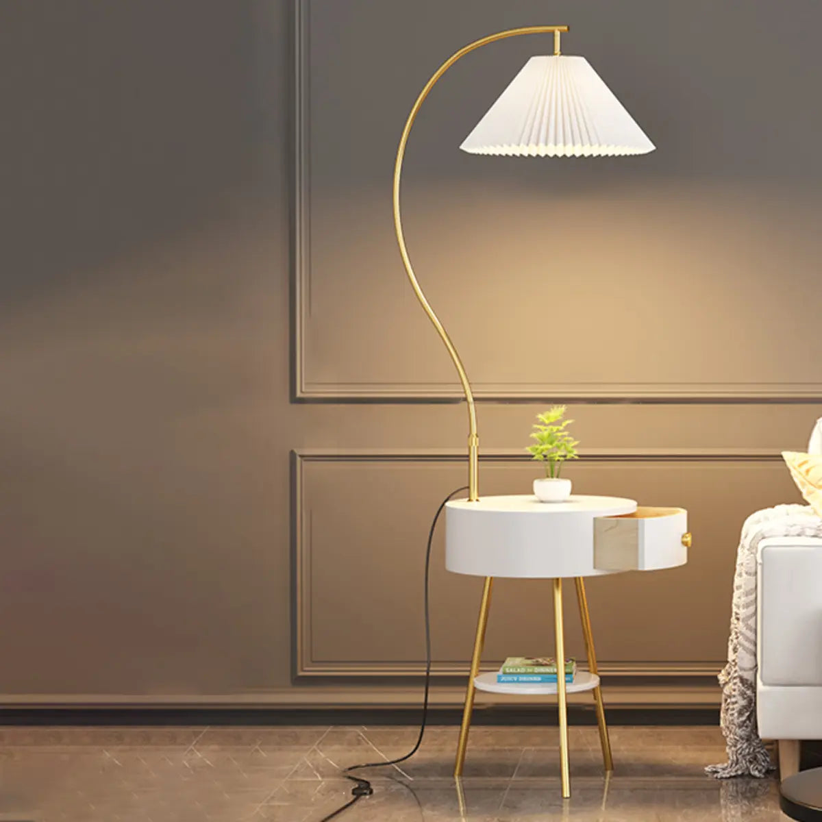 ZOWALA - White Pleated Gold Arched Floor Lamp with Storage