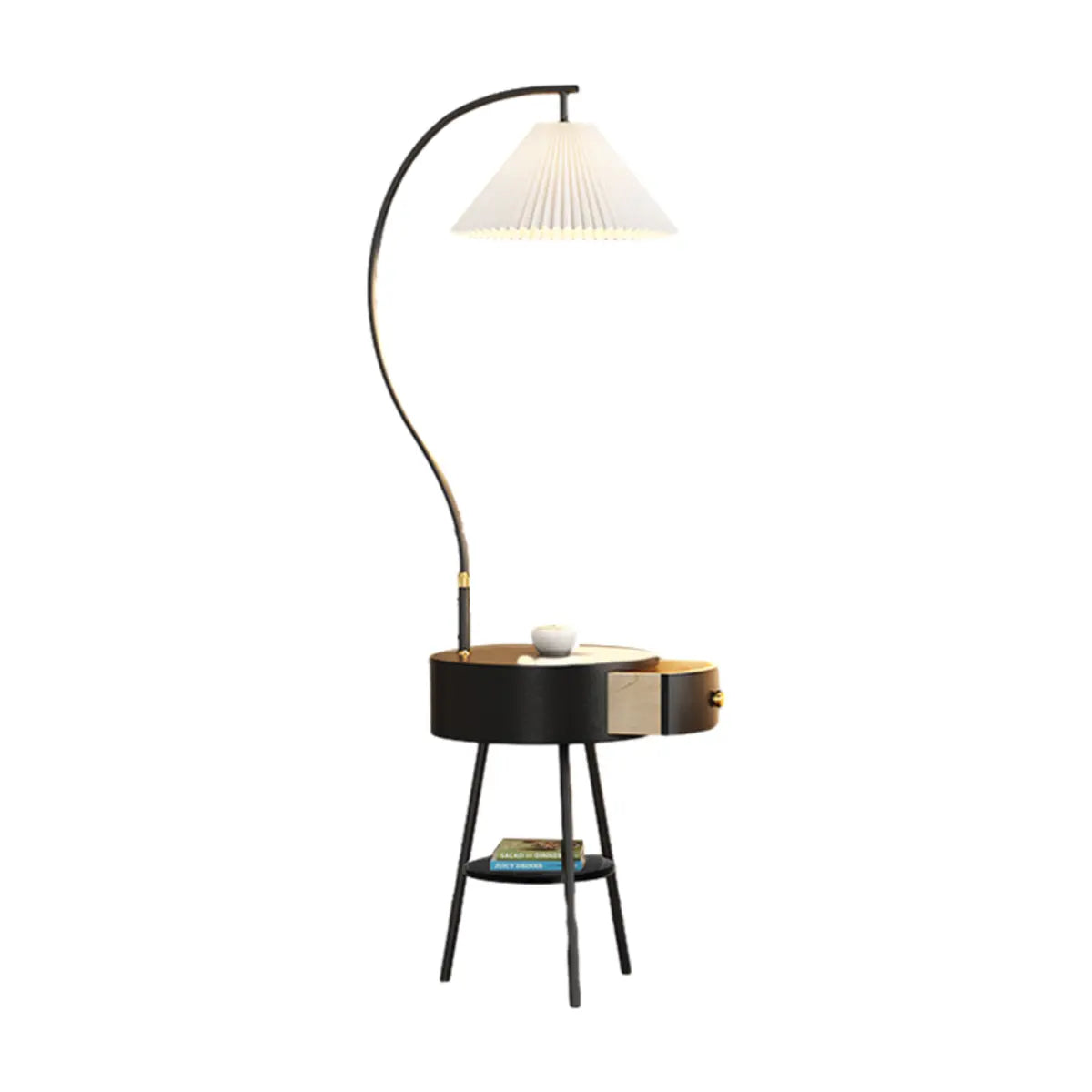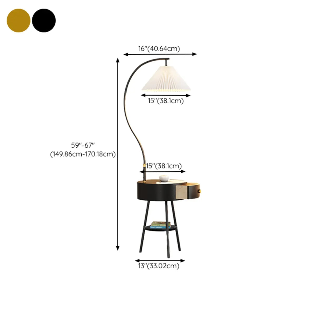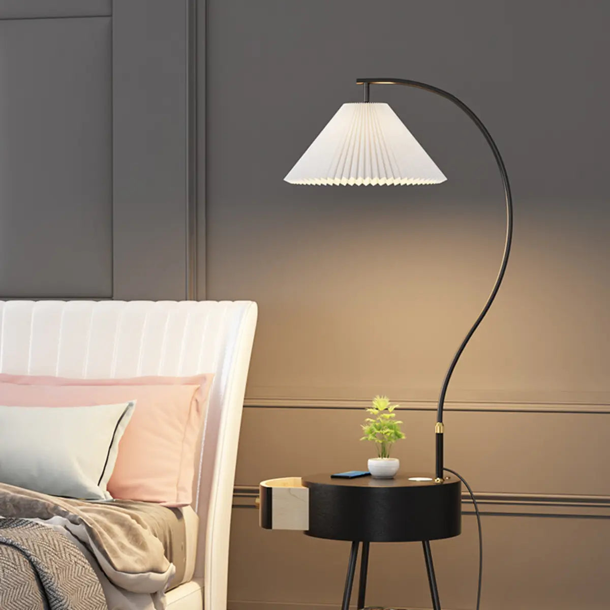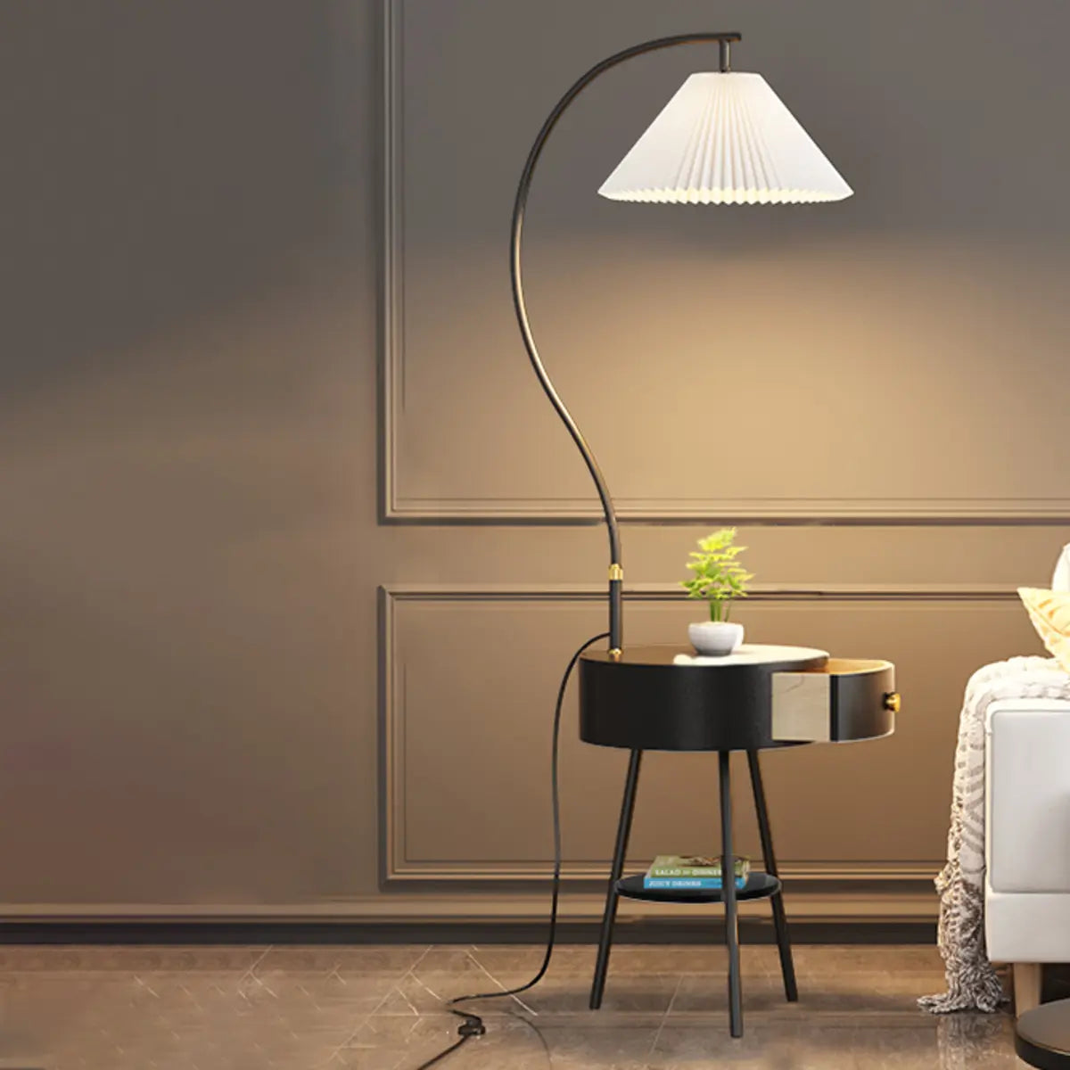 ZOWALA - White Pleated Gold Arched Floor Lamp with Storage