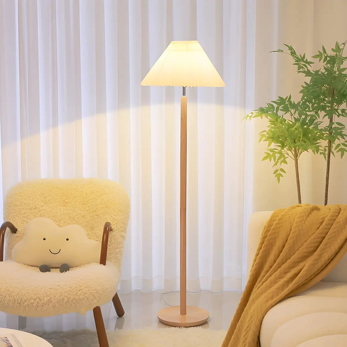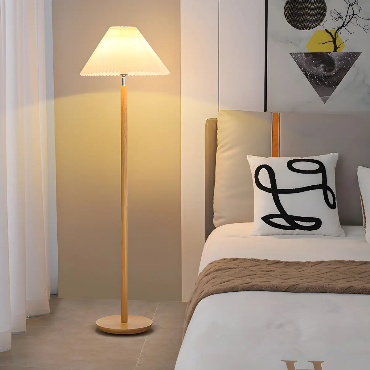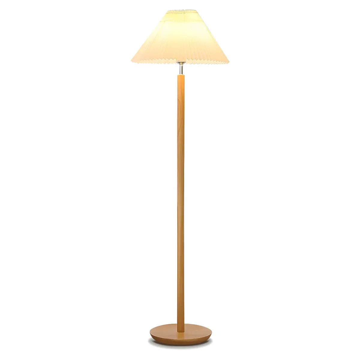 ZOWALA - Classic White Pleated Wooden Column Floor Lamp