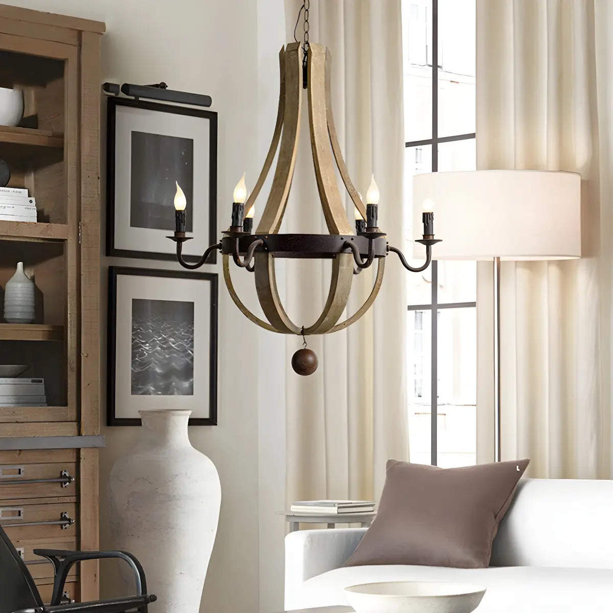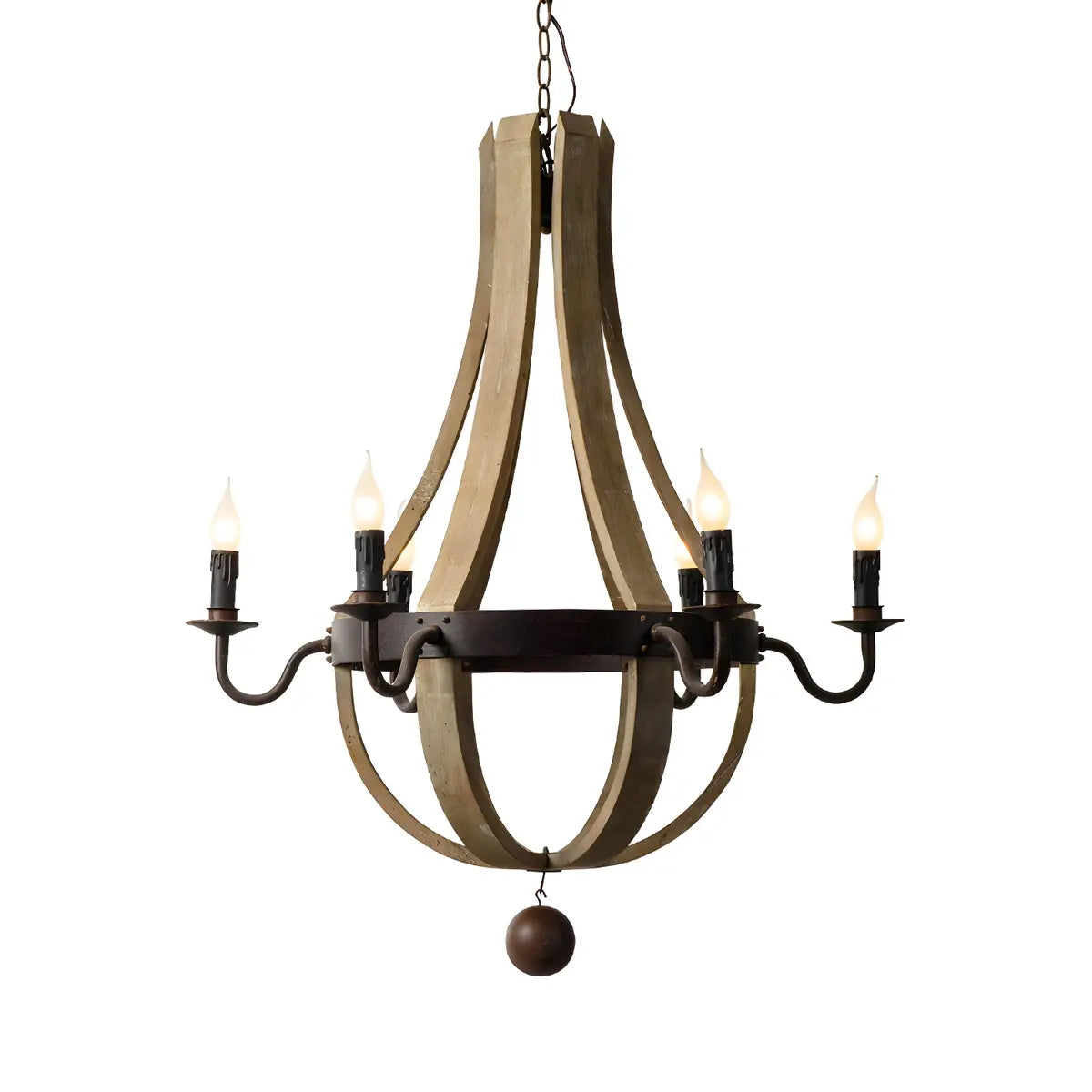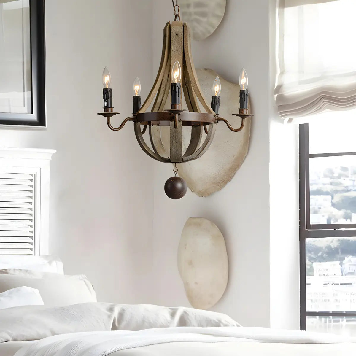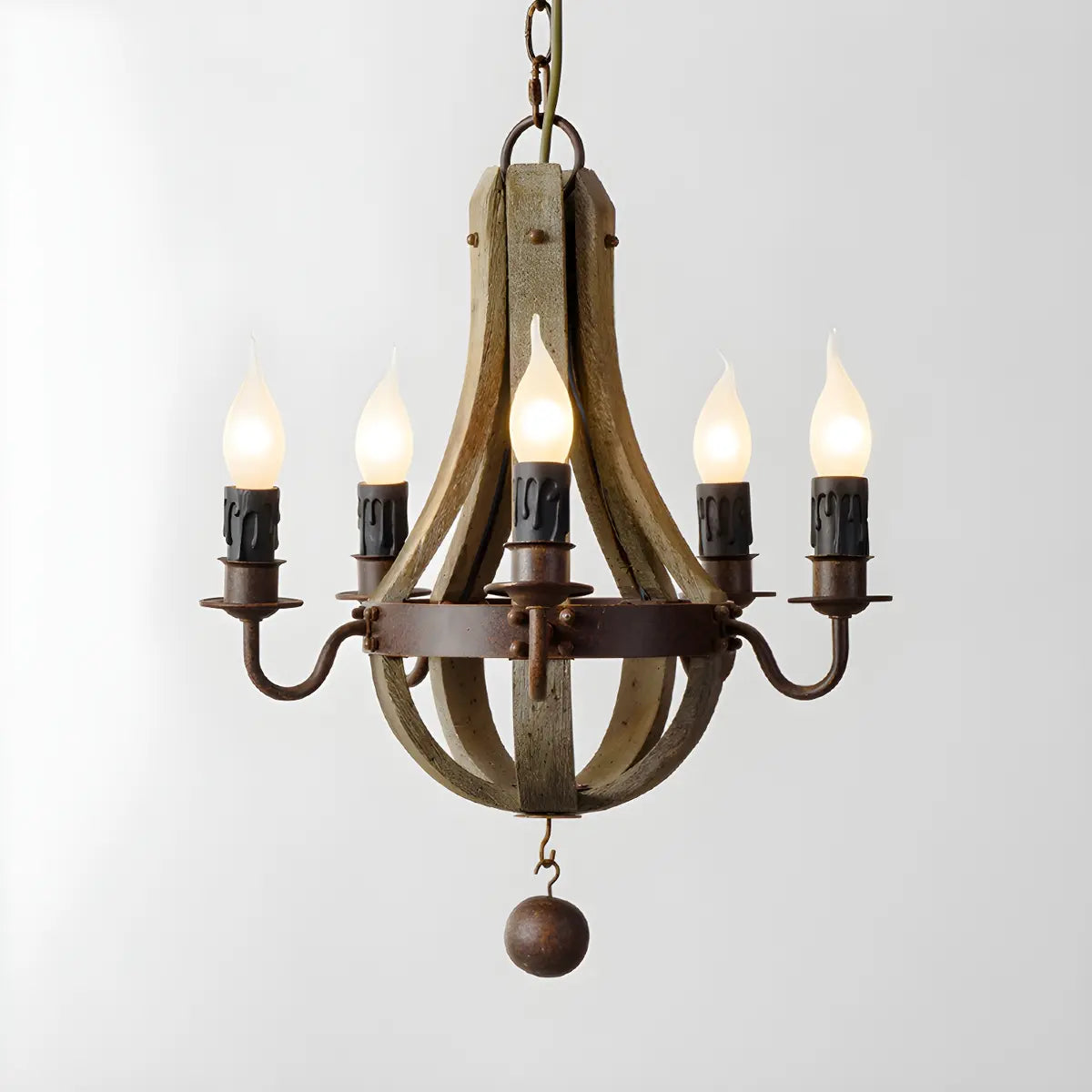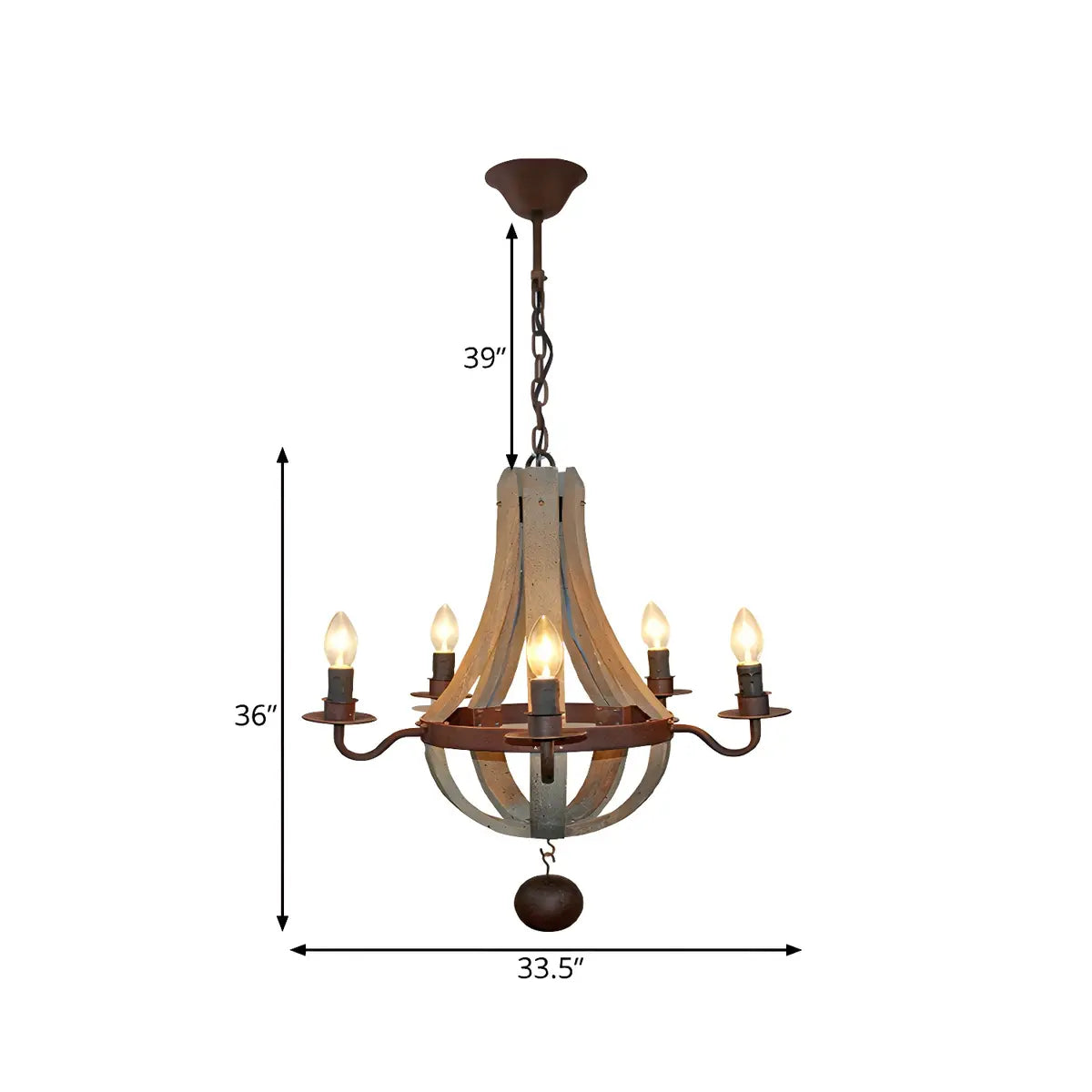 ZOWALA - Farmhouse Brown Wood Candle Chandelier
