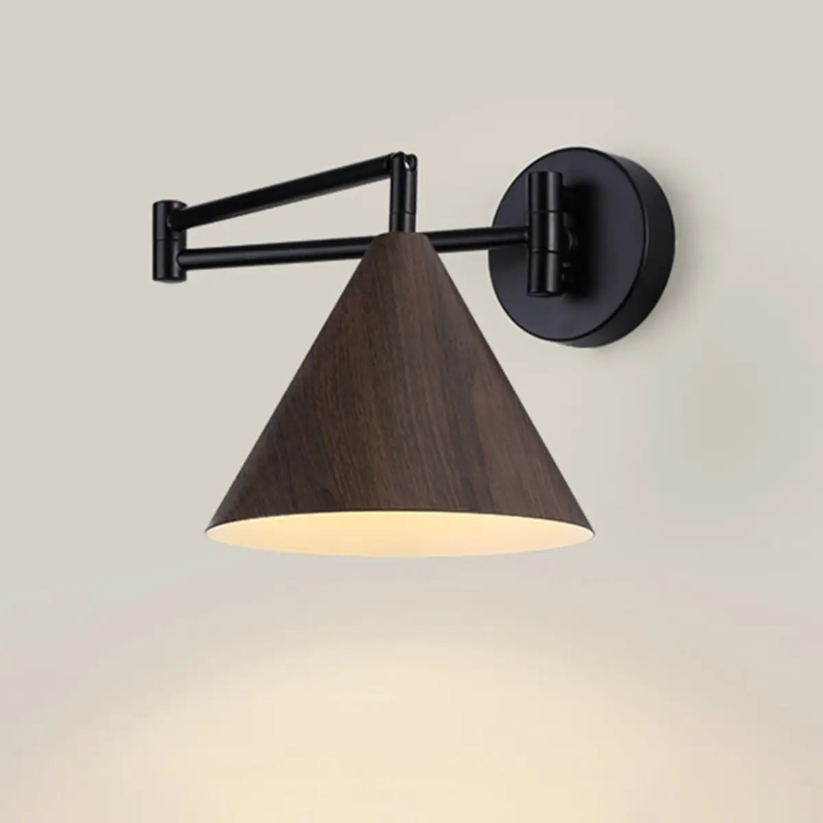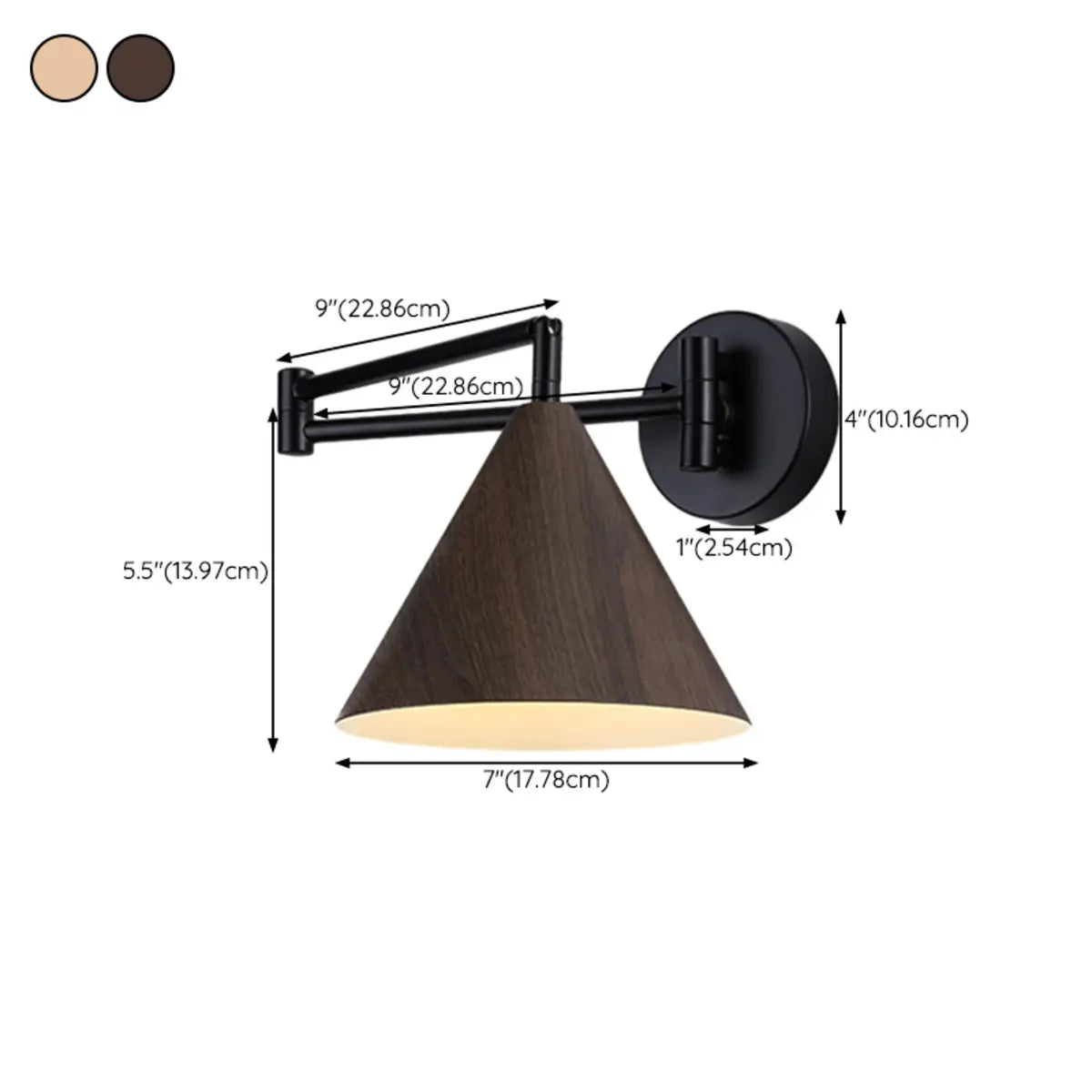 ZOWALA - Wood Color Cone Black Swing Arm Wall Sconce