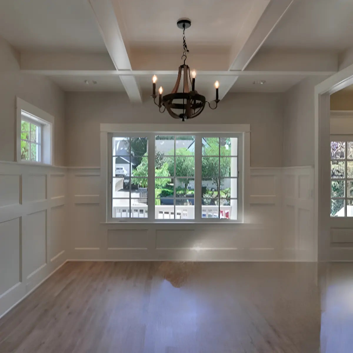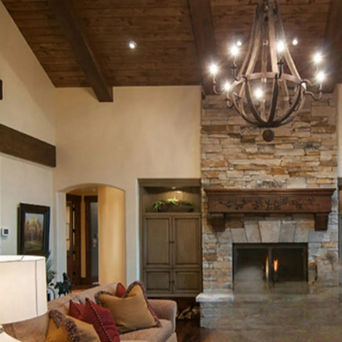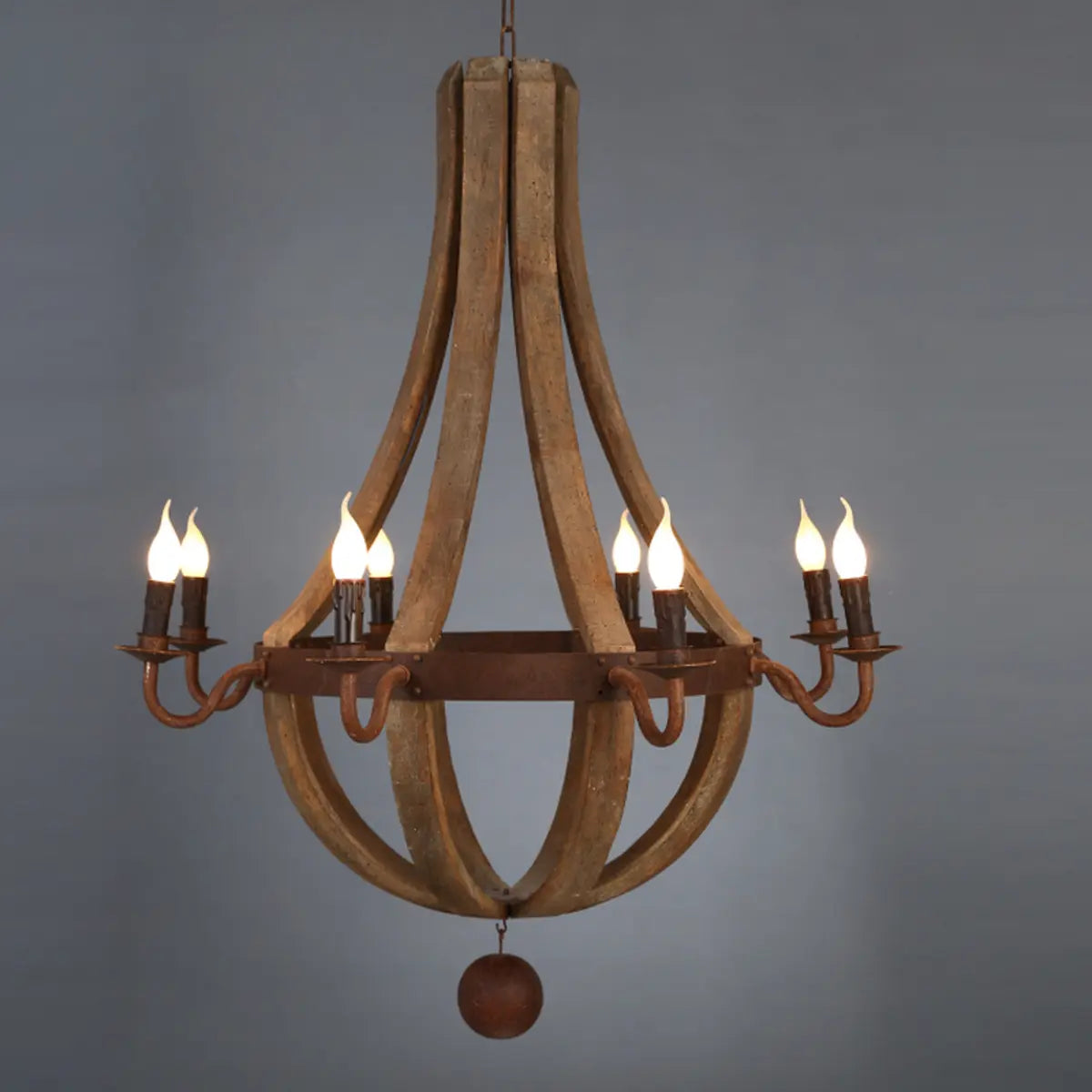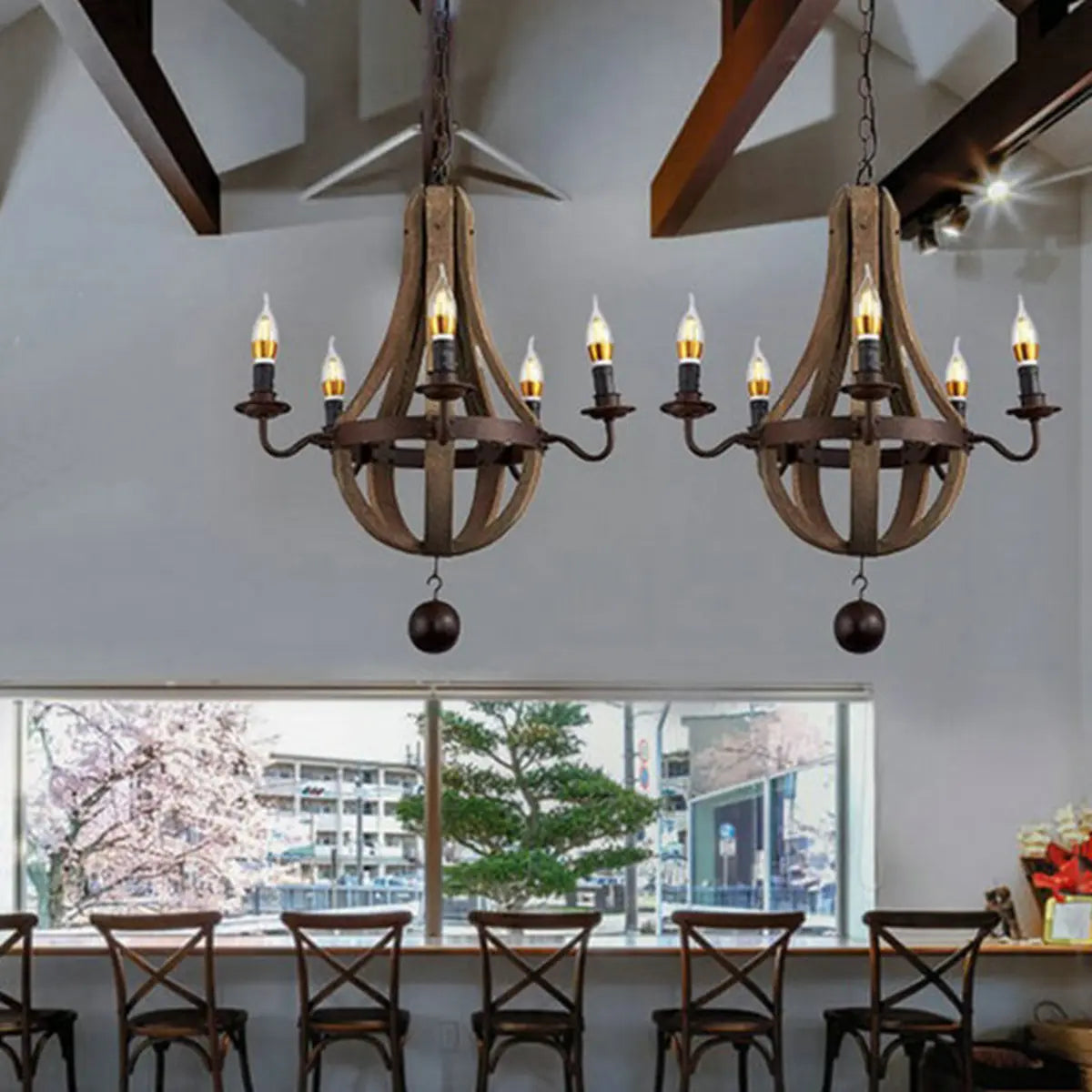 This Rustic style wooden Empire Chandelier features a classic design and antique candle lighting making it a perfect fit in any rustic or traditional home decor.