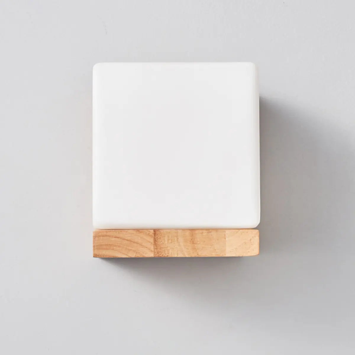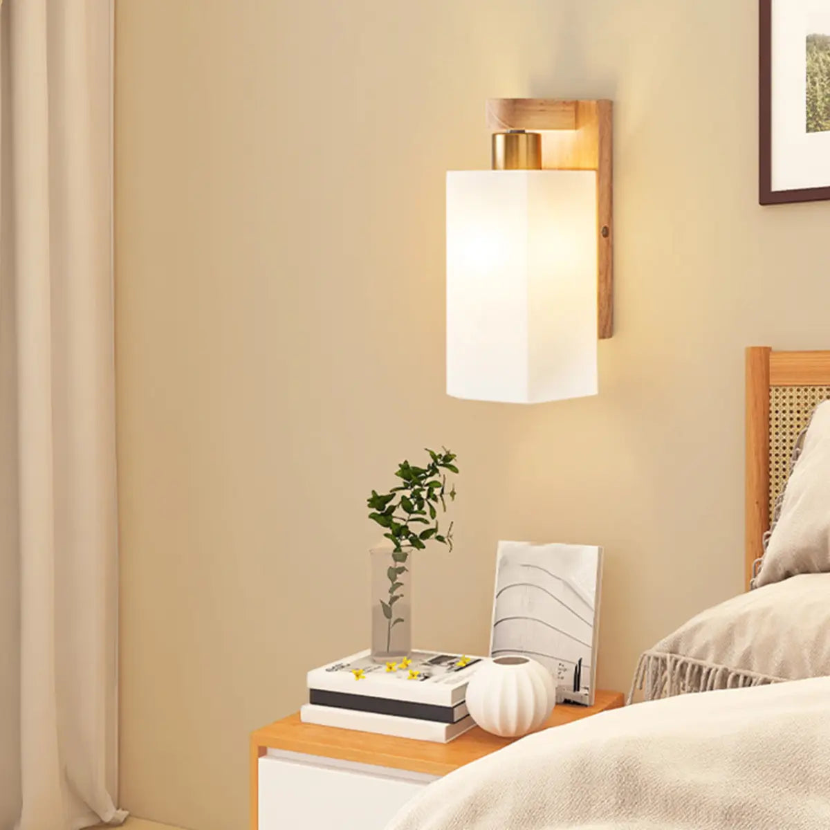 ZOWALA - Wooden Base Rectangular Frosted Glass Wall Sconce